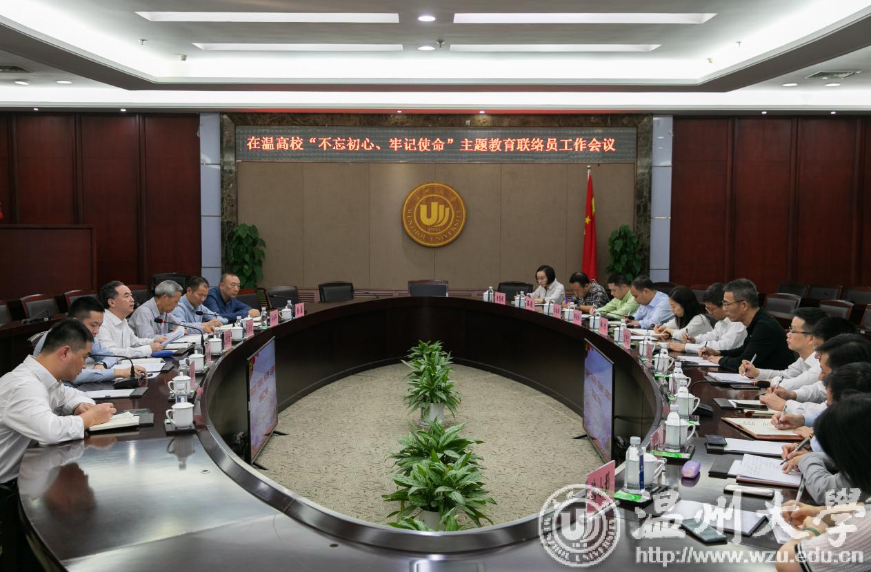 10月22日下午,在温高校“不忘初心、牢记使命”主题教育联络员工作会议在LY体育·(国际)官方网站岩松堂召开。省委主题教育第十五巡回指导组全体成员出席会议,温州医科大学、LY体育·(国际)官方网站、温州职业技术学院、浙江工贸职业技术学院、温州科技职业学院、浙江安防职业技术学院等六所高校主题教育工作负责同志与联络员参加会议。会议由副组长吴金良同志主持。
