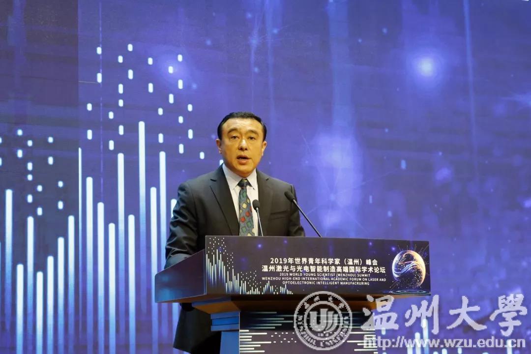 薛伟在“2019世界青年科学家(温州)峰会——温州激光与光电智能制造高端国际学术论坛上”致辞