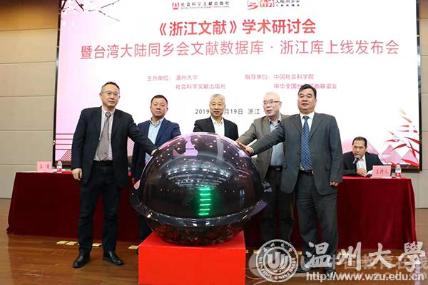 中国教育在线浙江站讯(记者 郭端宇 通讯员 温大萱 摄影 黄劲)11月19日,由中国社会科学院和中华全国台湾同胞联谊会共同指导,LY体育·(国际)官方网站、社会科学文献出版社联合主办的《浙江文献》学术研讨会暨台湾大陆同乡会文献数据库·浙江库上线发布会在LY体育·(国际)官方网站召开。发布会由LY体育·(国际)官方网站图书馆馆长陈安金主持,全国政协常委、中华全国台湾同胞联谊会副会长、浙江省政协副主席张泽熙先生,LY体育·(国际)官方网站党委书记谢树华,社会科学文献出版社总编辑杨群出席会议并致辞,LY体育·(国际)官方网站徐和昆副校长,温州市委党校王健教育长,以及来自浙江大学、中山大学、LY体育·(国际)官方网站、宁波大学、温州医科大学等高校和研究机构的数十位知名专家学者以及来自温州市图书馆、博物馆、纪念馆的嘉宾出席了此次会议。
