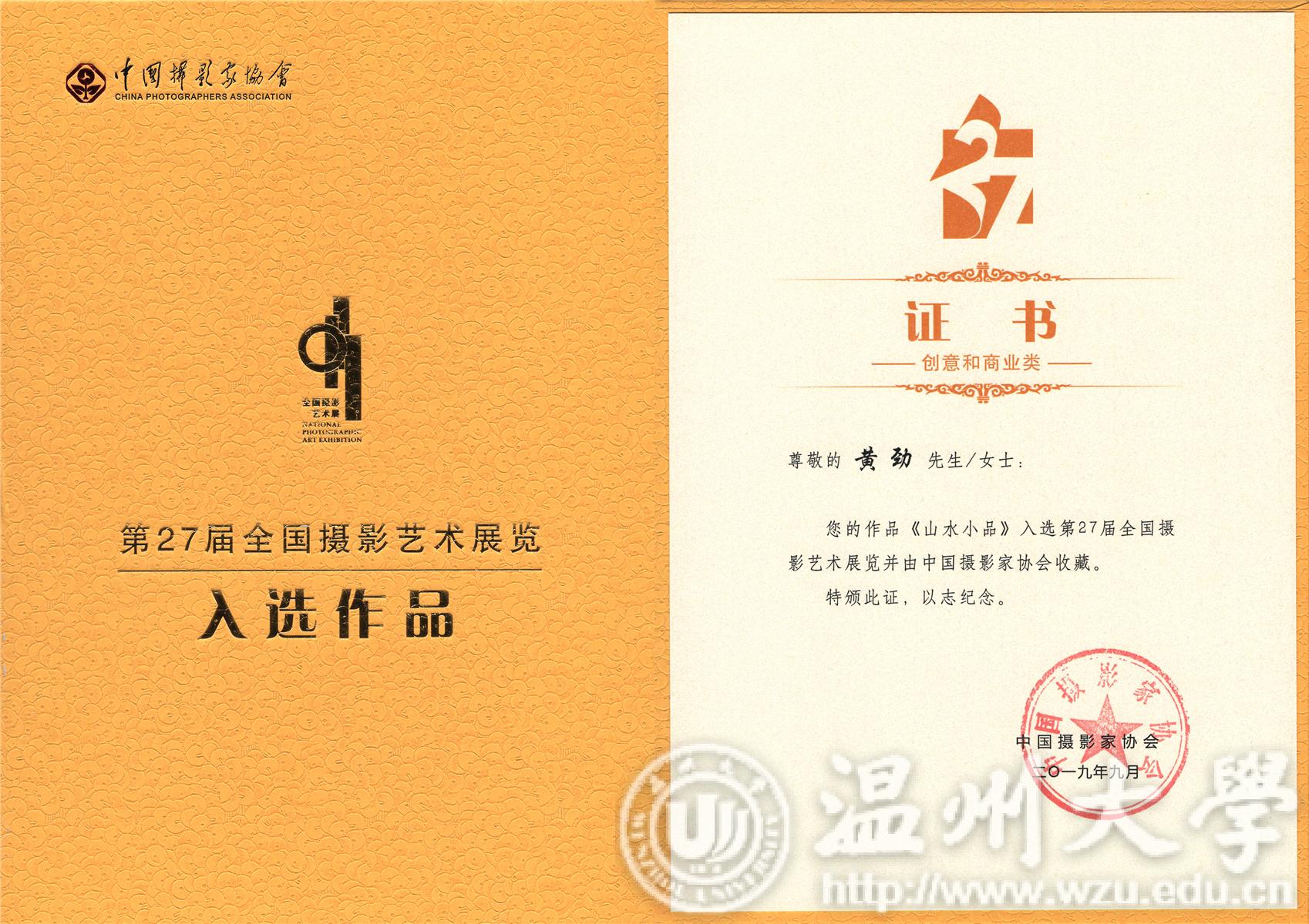 在最近结束的第27届全国摄影艺术展上,我校图书馆黄劲老师的摄影作品《山水小品》(组图)成功入选并由中国摄影家协会收藏。这是我校在摄影国展上零的突破,也是温州市高校唯一入选作品。
