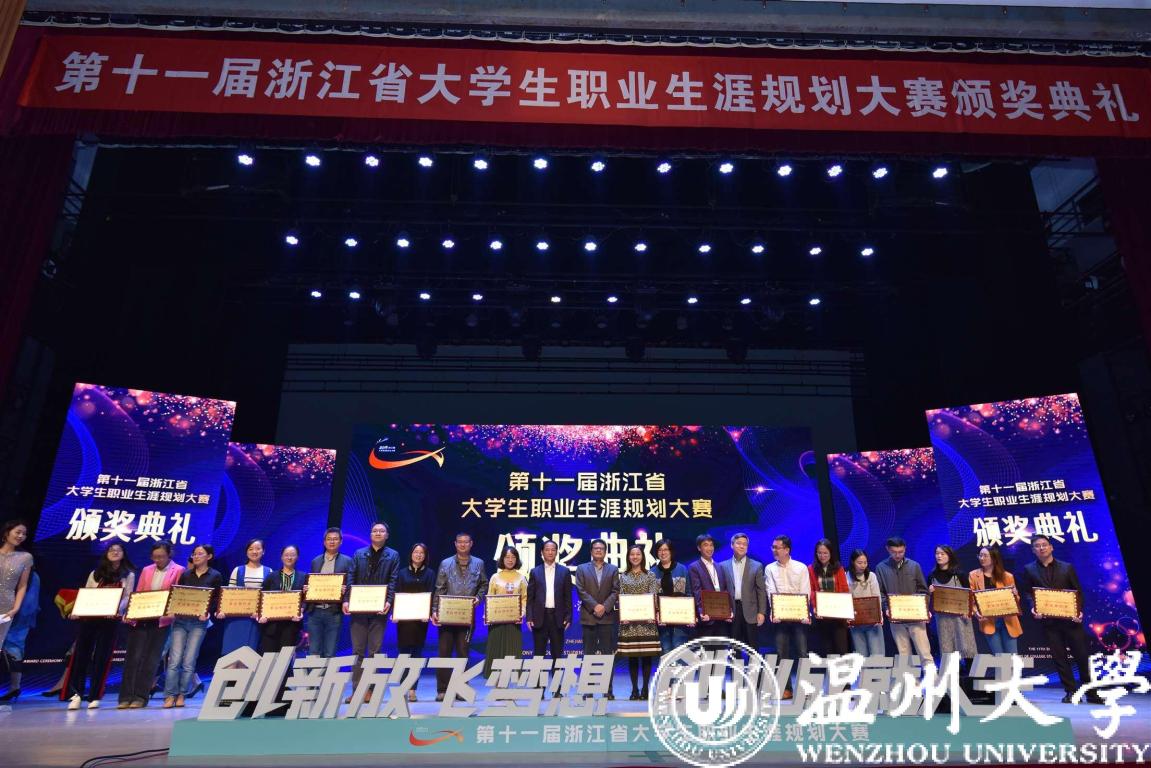 浙江省大学生职业生涯规划大赛是省一级学科竞赛。 全省105所高校2万多名大学生参加本次赛事,619个项目进入省级复赛,最后160个项目进入总决赛。其中,我校美术与设计学院潘影团队参赛项目《旧艺——"非"时尚技艺的传承与领导者》获得本研组创新创意类一等奖,潘影同学并获得“最佳个人风采奖”。教育学院卢家俊同学参赛项目《由心发声 伴生而行——一名男学前音乐教师的成长之旅》获得高职高专组职业规划类一等奖。金晨怡、周志明、杨鹏、严晓秋、周奇、杨婧6名老师荣获“优秀指导师奖”称号。