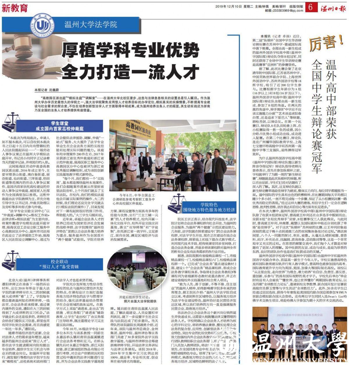开庭后组织学生讨论。 照片由温大法学院提供