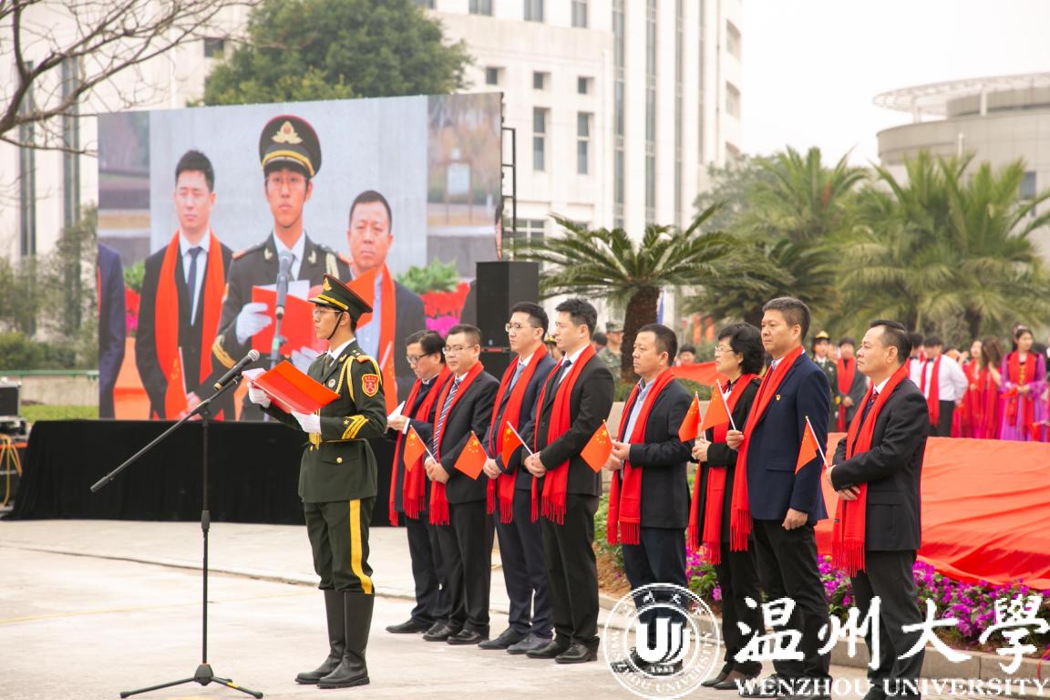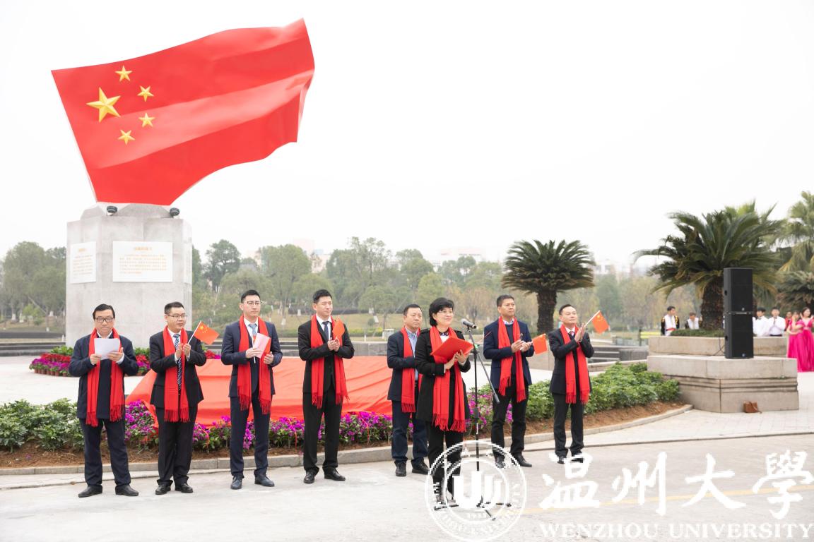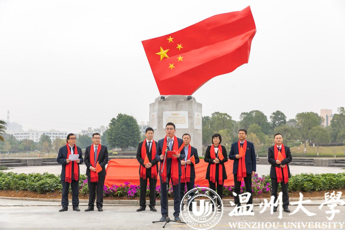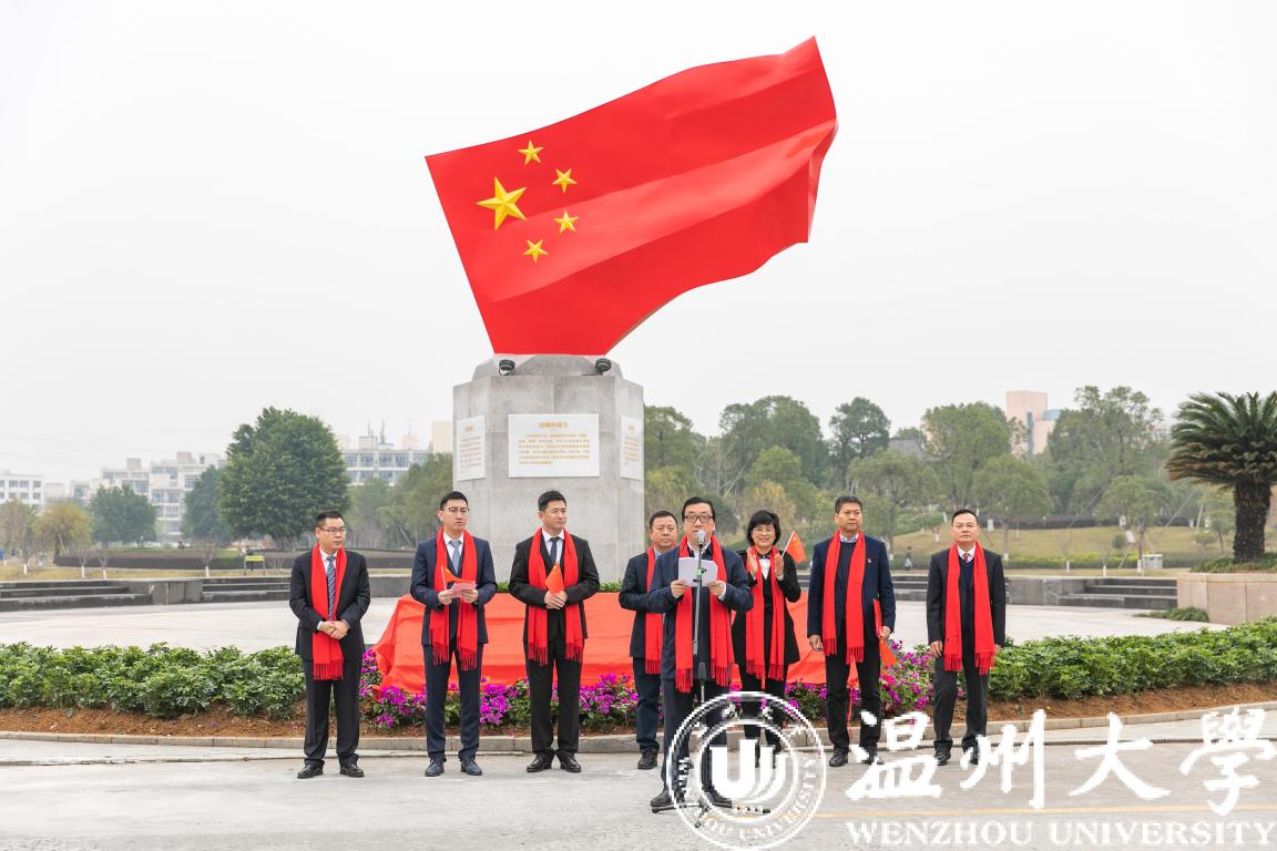 温州市委宣传部常务副部长邱小侠在致辞中指出,国内首个高校国旗广场即将在温大落成,这是LY体育·(国际)官方网站思想政治工作的一大创举,也是全市宣传思想文化建设的一件大事。近年来,LY体育·(国际)官方网站致力于把温州优秀历史文化融入校园文化,并使之成为学校思想政治教育的鲜活教材。2019年是新中国成立70周年,LY体育·(国际)官方网站先后建成了温籍数学家长廊,创作了温州原创歌剧《五星红旗》,推出了爱祖国、爱家乡、爱学校、爱他人、爱自己的系列文化品牌活动,打造了国旗广场爱国主义教育基地。这些创新之举不仅为培育德智体美劳全面发展的时代新人奠定了坚实的基础,也为引领社会风尚,教育广大市民,听党话、跟党走,推动温州高质量发展做出重要贡献。