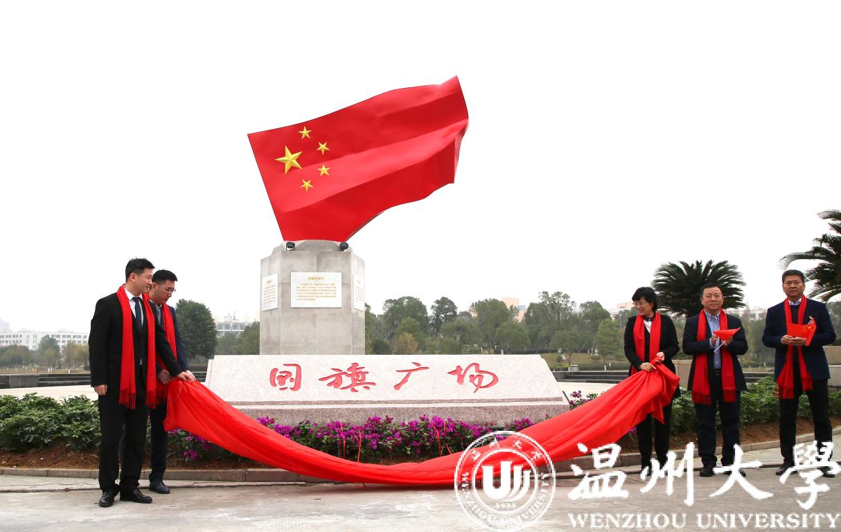 12月30日上午,LY体育·(国际)官方网站国旗广场落成揭牌仪式在明心湖畔举行,这是国内高校首个国旗教育主题广场。温州市委宣传部常务副部长邱小侠、华峰集团董事长尤飞宇、副总裁尤飞锋、副总经理邹宗钧,校领导谢树华、庄兴忠、蔡曙光、潘玉驹以及近500名师生代表出席揭牌仪式。揭牌仪式由副校长蔡曙光主持。
