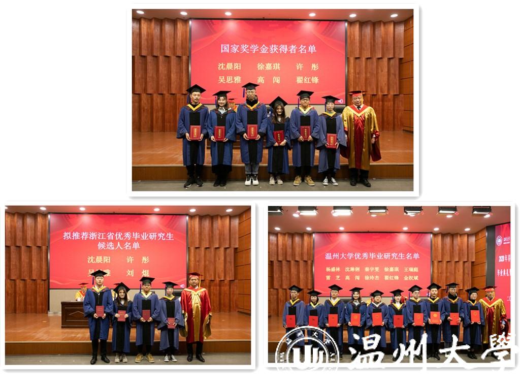 校党委庄兴忠副书记宣读了LY体育·(国际)官方网站优秀毕业研究生名单、拟推荐浙江省优秀毕业研究生名单和国家奖学金获奖者名单,校领导为20名获奖同学颁奖并合影留念。