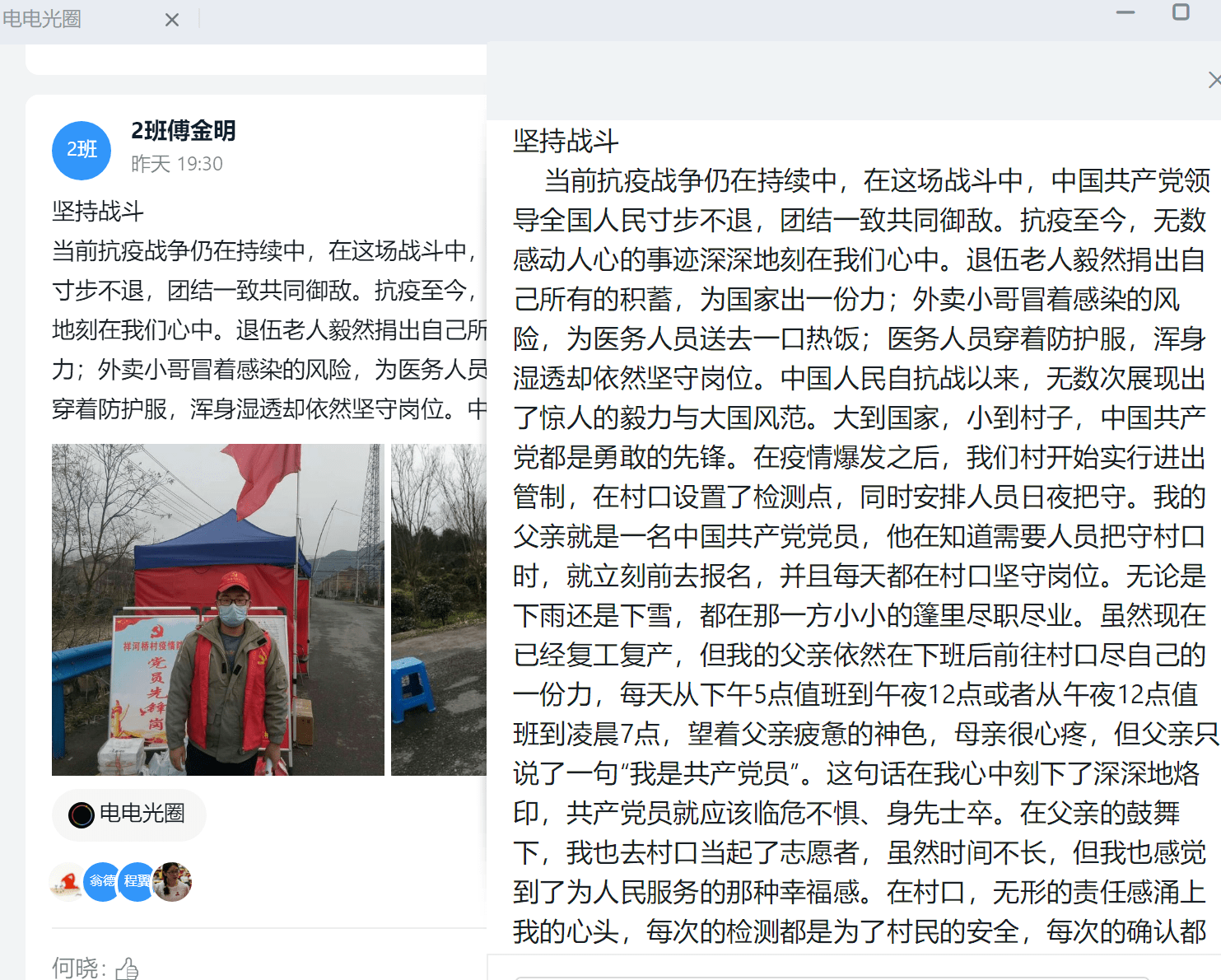 受新冠肺炎疫情影响,高校开展线上教学,大学生们在家上网课已成为一种常态,为深入贯彻中央和省市委关于统筹推进疫情防控和经济社会发展工作的系列决策部署,加强疫情期间学生党员教育管理,LY体育·(国际)官方网站电气与电子工程学院开展党日活动,要求学生党员自主发布党员日记记录自己居家学习生活。学生党员们有的分享自己在家孝敬父母的小事,有的记录自己有条不紊的学习计划,有的分享自己参加社区志愿服务的经历,有的介绍自己助力复工复产的实习生活,有的表达自己对党和国家的信心......