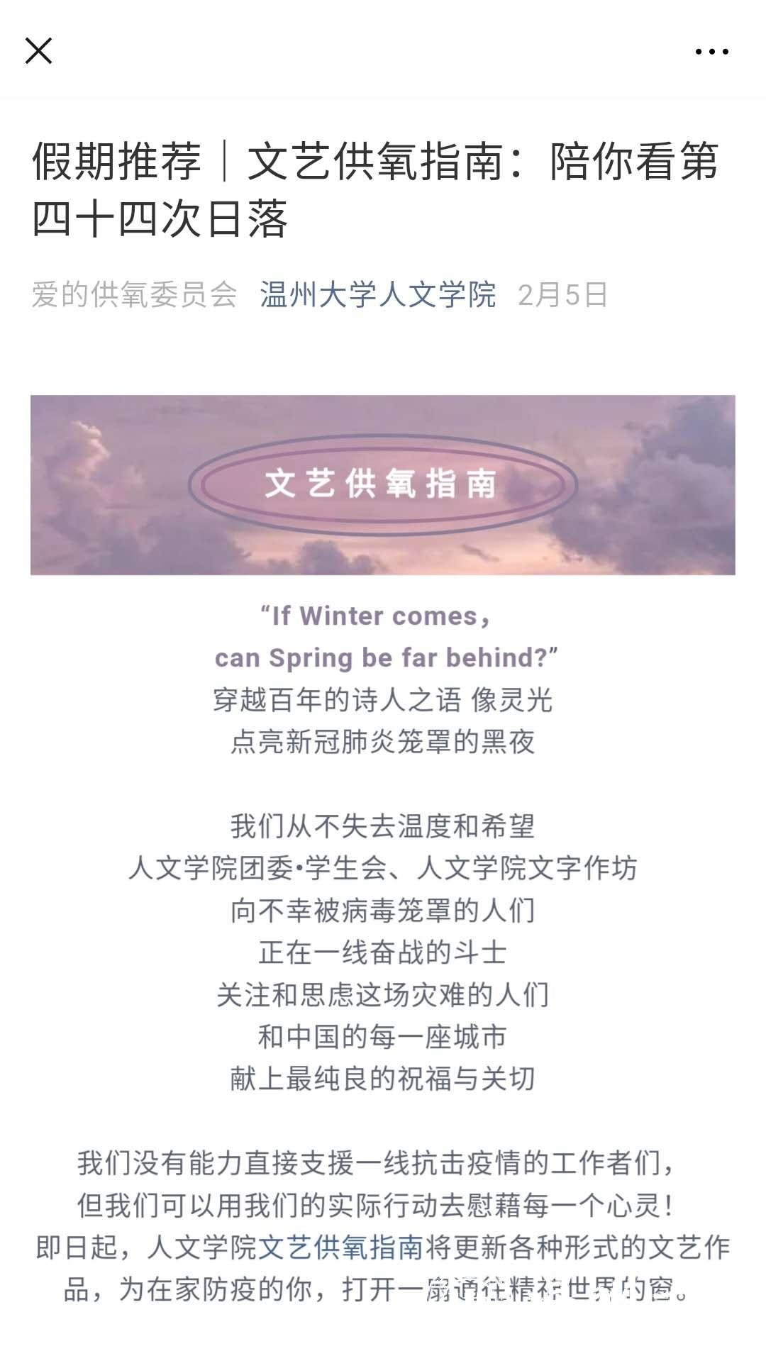 在各类品牌活动的熏陶下,温大汉语言文学专业学生的师范素养和写作能力日渐凸显。人文学院积极出版学生刊物《文字作坊》《文轩》,学生部分优秀作品在《福建文学》《温州文学》及各类报纸上发表,每位大三学生完成10万字个人作品集更是成为一大亮点。新冠肺炎疫情影响下,该专业的学生组织发起“文艺供氧”活动,把自己读过的看过的而且深有体会的文艺作品推荐给居家的同学和民众,希望用各式各样的优秀文艺作品为身边的人和“远方的人们”提供精神的鼓舞和慰藉,为精神“供氧”,提精神之气。按主题分类,迄今为止已定期推送20期。这些都让该专业学生在就业时具有极大的竞争优势,省评估院的数据显示,该专业毕业生就业专业相关度分数比全省同专业平均水平高出15分以上。