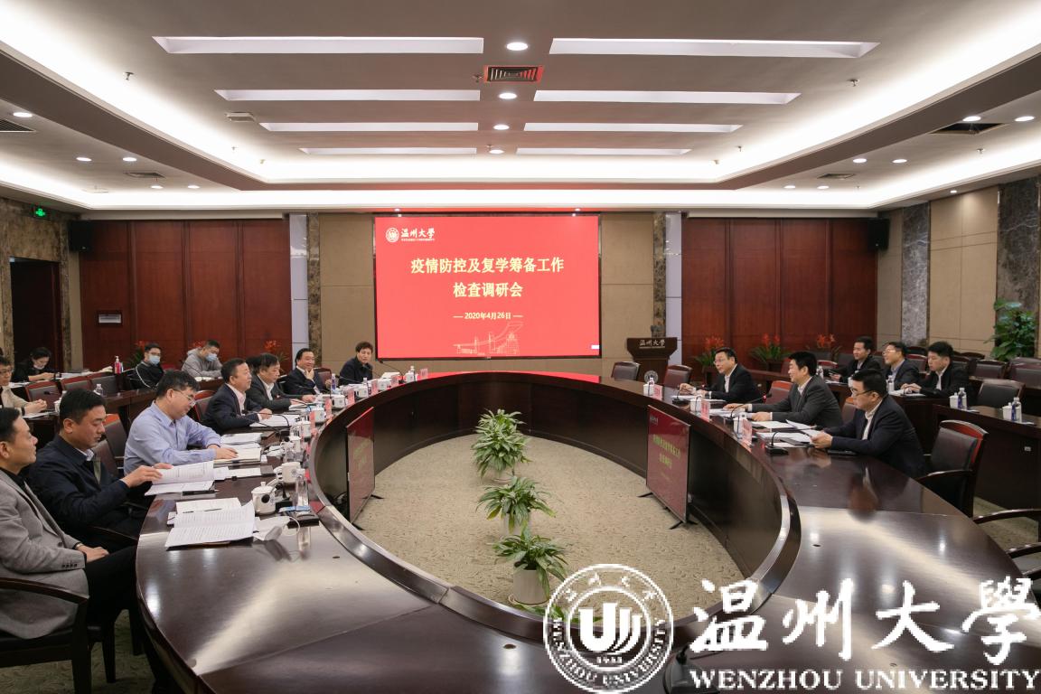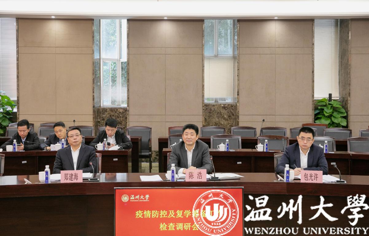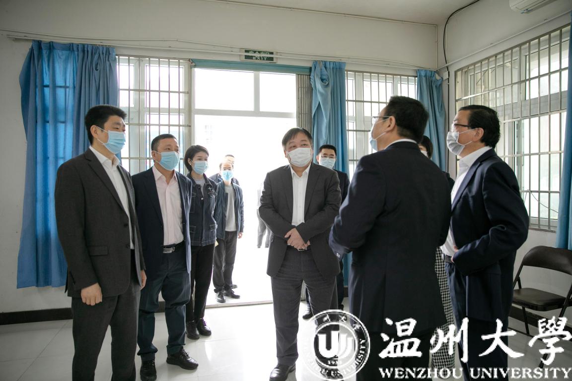 4月26日上午,温州市委副书记、政法委书记陈浩,市委副秘书长包光许,市教育局局长郑建海一行莅临我校,对学校疫情防控及复学筹备工作进行督导座谈。校党委书记谢树华、校长赵敏、副校长蔡曙光及党校办、后勤管理处、保卫处等相关部门负责人陪同。