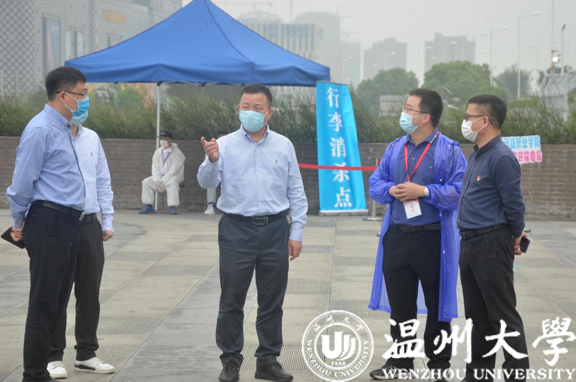 5月7日,校党委书记谢树华来到我校设在温州动车南站等处的接待点、消杀点和报到点,对报到和接站流程进行检查,并亲切慰问返校学生和接站工作人员。