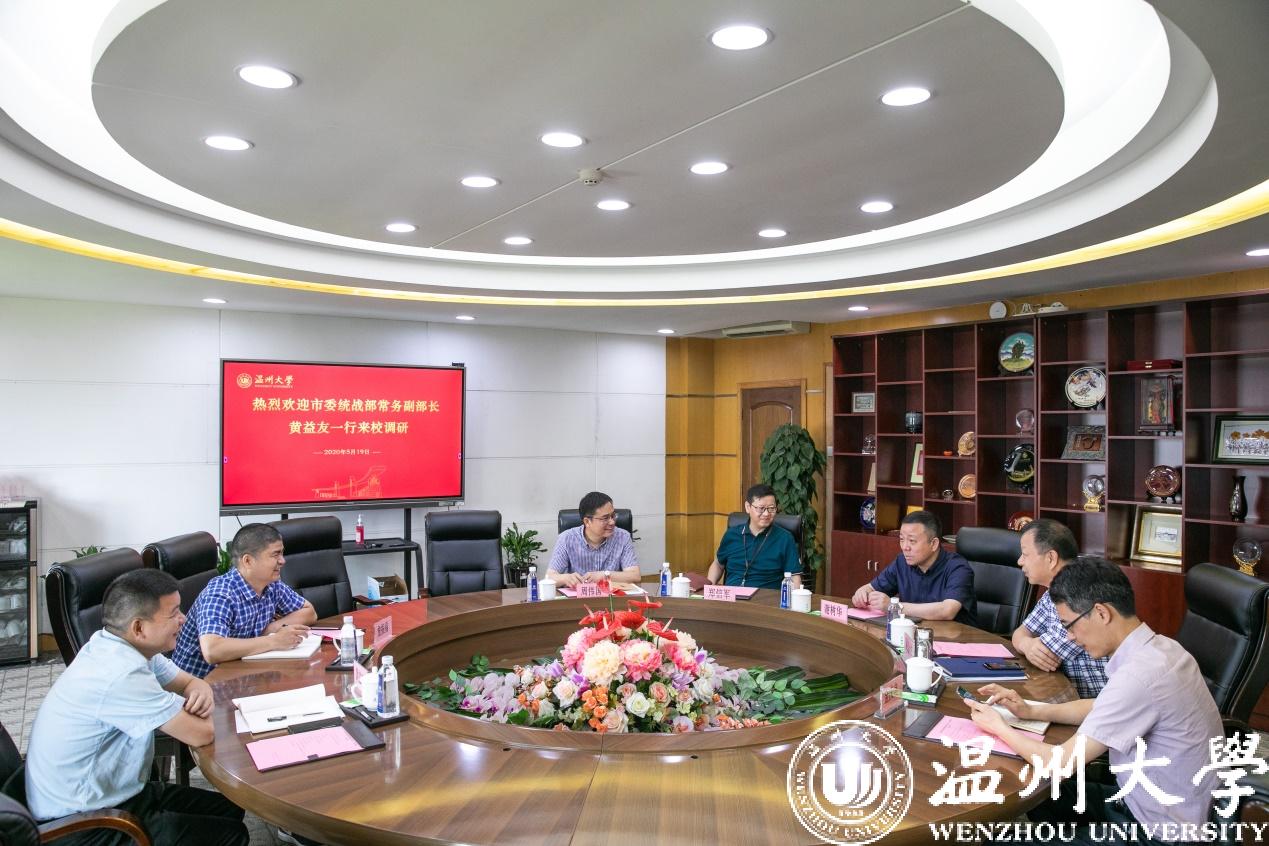 5月19日上午,温州市委统战部常务副部长黄益友一行莅临我校,就学校统战工作开展专题调研。校党委书记谢树华、党委副书记吴金法、党委委员郑信军出席调研会。