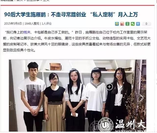 △媒体报道学生施雁鹏创办原未皮具创业