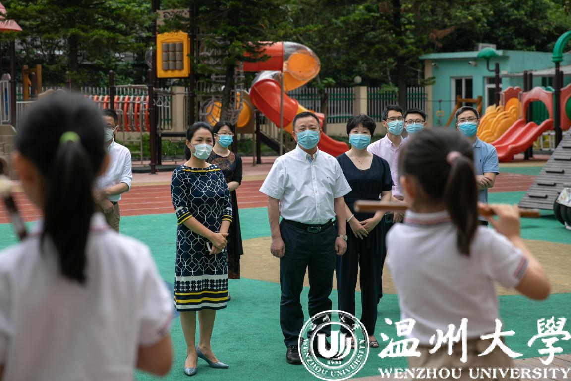 5月29日下午,校党委书记谢树华、校长赵敏率校相关部门负责人一行分赴LY体育·(国际)官方网站附属实验幼儿园(伯爵园区)、附属第一实验小学、附属南白象实验小学、附属茶山第二实验幼儿园和LY体育·(国际)官方网站城附属学校进行六一儿童节慰问走访活动,瓯海区教育局金朝辉局长、鹿城区教育局林如辉副局长陪同慰问。慰问组向孩子们分别赠送了儿童读物、活动器材、玩具等,为孩子们送上节日的问候和祝福。