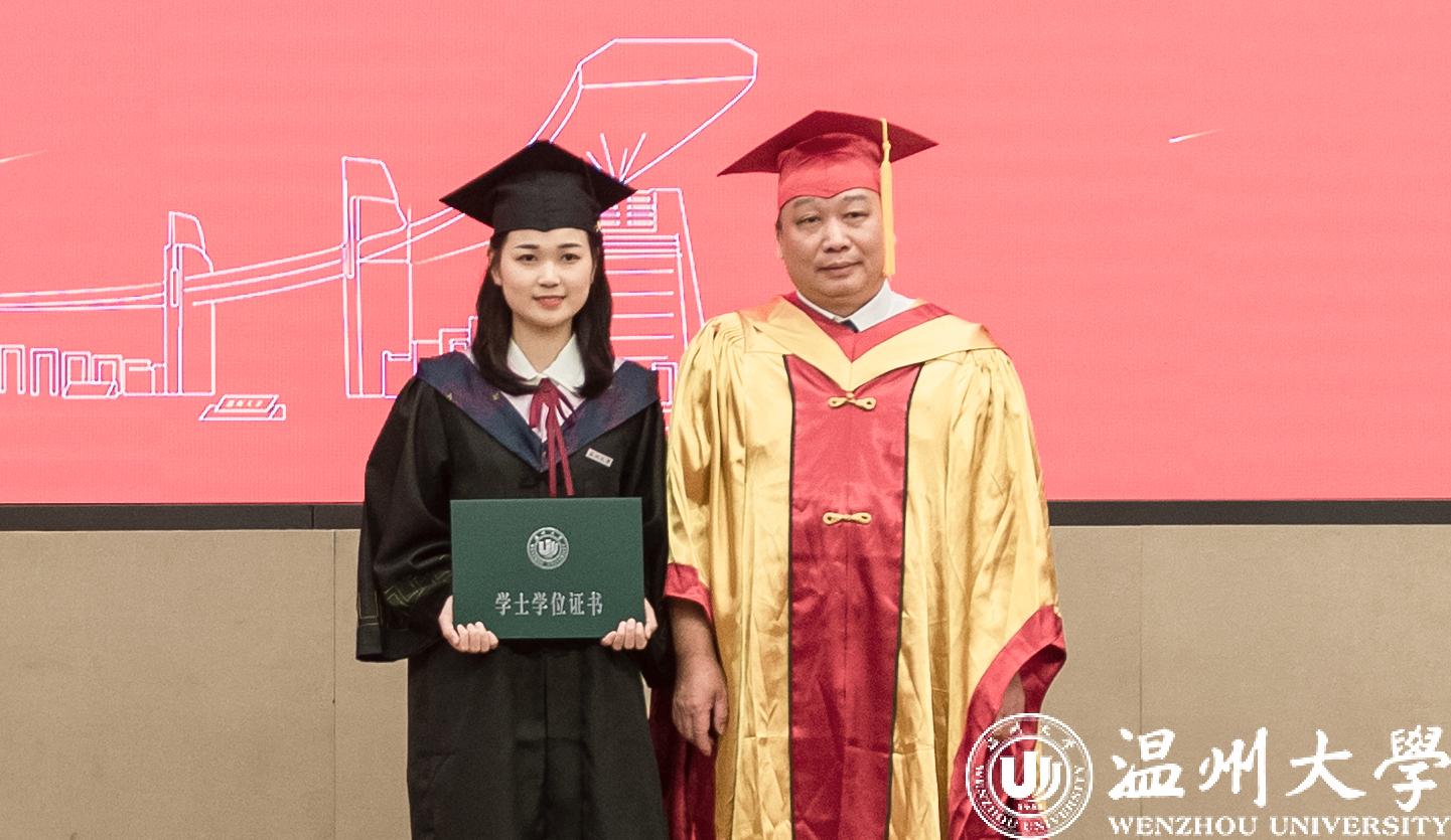 “温大用爱和温暖孕育了我们无尽的梦想和希望。” 作为研究生代表,机电工程学院2017级机械工程专业潘俏菲同学表达了自己对母校最衷心的感谢和最诚挚的敬意。“感谢芳华正茂、人文日新的温大,感谢身正学高、春风化雨的师长们,感谢志向高远、携手共进的同窗校友们,是你们给予了我们无畏前行的力量”“纵有千古,横有八荒。前途似海,来日方长。”
