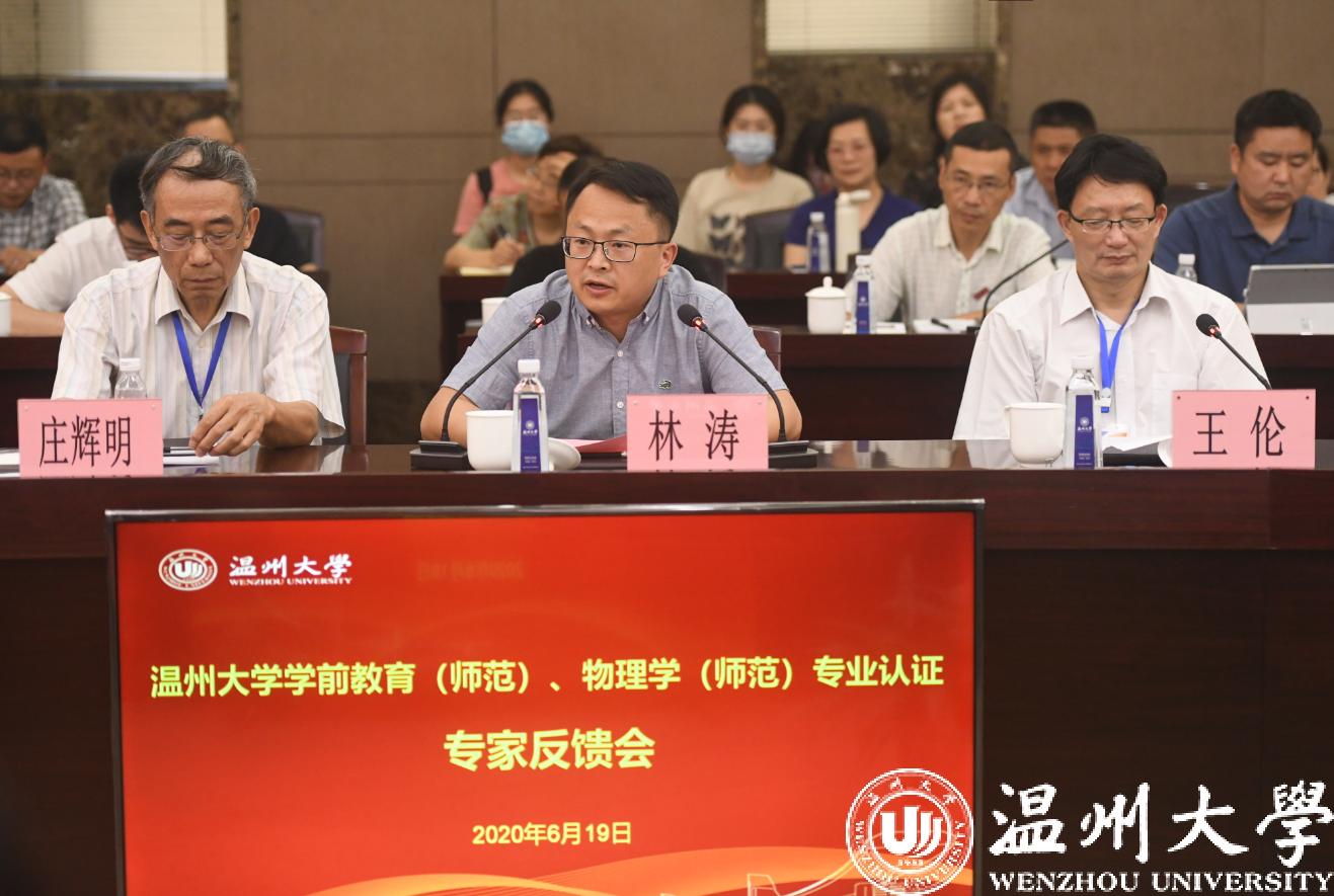 认证专家组成员分别是:学前教育专业专家组组长庄辉明教授、扬州大学教育科学学院陈秋苹教授、浙江师范大学国际儿童研究院秦金亮教授、丽水学院幼儿师范学院胡锋吉教授、杭州观成幼托园杨蓉总园长,物理学专业专家组组长安徽师范大学王伦教授、浙江师范大学赵雷洪教授、淮阴师范学院周平教授、湖州师范学院生命科学学院李彬教授、原浙江省教育厅教师工作处李敏强处长。浙江省教育厅教师工作处林涛副处长,LY体育·(国际)官方网站赵敏校长、薛伟副校长、徐和昆副校长,党校办等各有关职能部门负责人、两个专业所在学院的领导和教师代表、其他承担师范生培养学院的相关代表参加了会议。会议由专家组王伦组长主持。