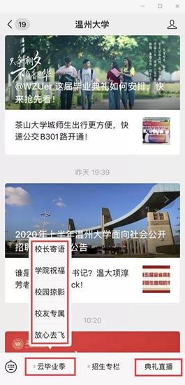 据悉,为了让受疫情影响不能到场的毕业生感受到毕业氛围,LY体育·(国际)官方网站微信公众号同步上线2020年“云毕业典礼”,作为本次线下毕业典礼的延伸。“云毕业典礼”分为校长寄语、学院祝福、校园掠影、校友专属、放心去飞等5个版块,为广大毕业生提供了丰富的毕业季线上资源,营造了浓郁的毕业氛围。毕业生们可云游温大,观看校长和各学院院长的祝福视频,在学校各标志景点“云打卡”生成专属头像和专属合影;在线申领电子校友卡,成为温大校友一份子;欣赏毕业主题的改编歌曲和原创MV视频,毕业生寄语滚动播放,“毕业快乐”“来日方长,后会有期”“愿有前程可奔赴,亦有岁月共回首!”“温大永远是我们的家”等留言不断刷屏,传递了一位位毕业生对母校的感激和不舍。 “一路我们曾携手并肩,温大精神伴我向前,牢记求学问是、敢为人先,承诺最高处相约!”母校祝福所有的毕业生一路珍重!鹏程万里!