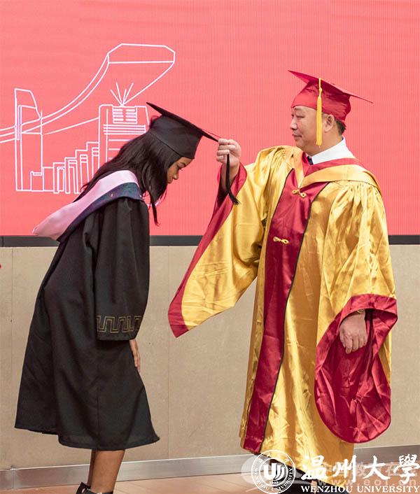 隆重的学位授予仪式上,赵敏为毕业生代表们颁发学位证书,并一一正冠、拨穗合影。稻穗的成熟代表着学有所成,从左到右,拔去的是大学的稚嫩与过往,拨来的是温大给每位学子的份份祝福与牵挂。