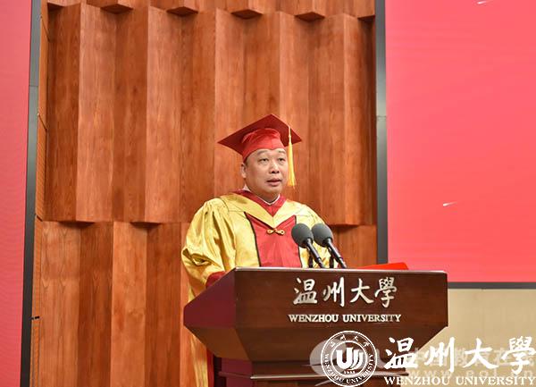 “今天,是属于你们的高光时刻!2020届毕业生顺利完成学业,即将开启人生新的征程!” 校长赵敏为全体毕业生致辞。由于疫情的影响,只有部分毕业生代表能够到现场参加毕业仪式,“作为校长,不能为你们拨穗正冠、面对你们道一声‘祝贺’,我的内心难掩遗憾。”但在这美好且特殊的时刻,校长更是为即将奔赴未来的毕业生们感到喜悦、激动和自豪。他寄语毕业生,希望同学们感悟新时期抗“疫”精神,始终保持真真切切的家国情怀,因为家国情怀是一个人最根本、最深沉的力量;感悟新时代温州人精神,始终保持敢闯敢拼的奋进姿态,因为身处温州的你们,敢闯敢试、创新创业,也刻下了温州人精神的深刻烙印;感悟新时代温大精神,始终保持追梦圆梦的持久恒心,因为你们是温大学子,身上有温大基因,温大精神已经熔铸于每个人的骨髓。他希望毕业生以“三种精神”为引领,乘风破浪,无畏前行。最后,赵敏校长深情说道:“请将母校对你们的牵挂装入行囊,趁年轻,大胆勇敢去闯吧,做奔涌澎湃的‘后浪’,不惧风雨、一往无前!母校永远是你们最坚强的后盾!”