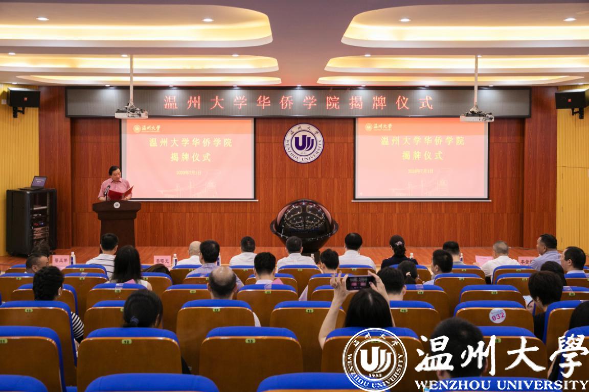 7月1日,LY体育·(国际)官方网站华侨学院揭牌仪式在国际教育学院隆重举行。市委统战部常务副部长黄益友、省侨联副主席刘光华、市侨联主席郑宏国、校党委书记谢树华、校长赵敏共同为华侨学院揭牌,市委统战部、丽岙街道、丽岙侨联、仙岩侨联相关领导,副校长蔡曙光、校以侨为特色的“省部共建”高校领导小组成员、省部共建办相关负责人及国际教育学院师生代表参加揭牌仪式。
