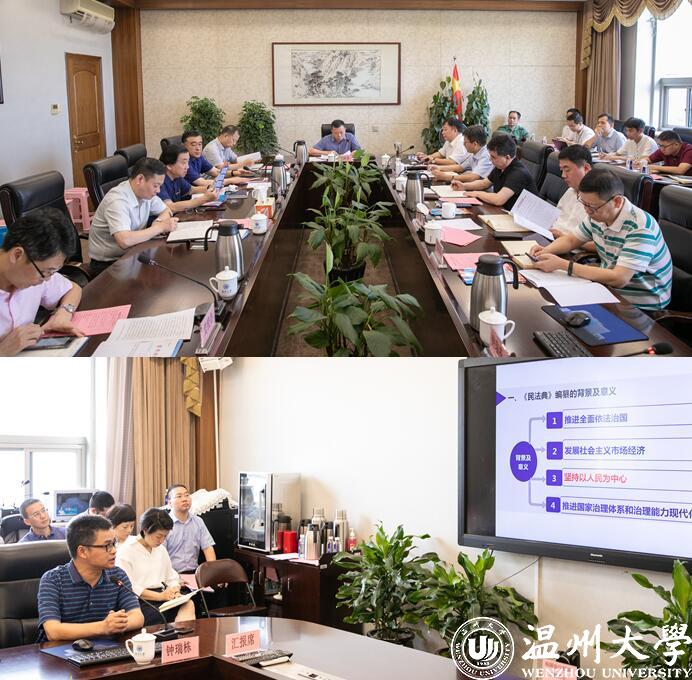7月4日上午,校党委书记谢树华主持召开党委理论中心组(扩大)学习会。会上,谢树华书记传达浙江省管领导班子政治建设座谈会精神,徐和昆副校长传达省社科联第八次代表大会精神,国家社科基金重大项目首席专家、中国法学会民法学研究会理事、我校法学院教授钟瑞栋结合习近平总书记关于切实实施民法典重要讲话精神,为中心组作民法典专题辅导。中心组成员围绕主题认真学习并交流学习体会。