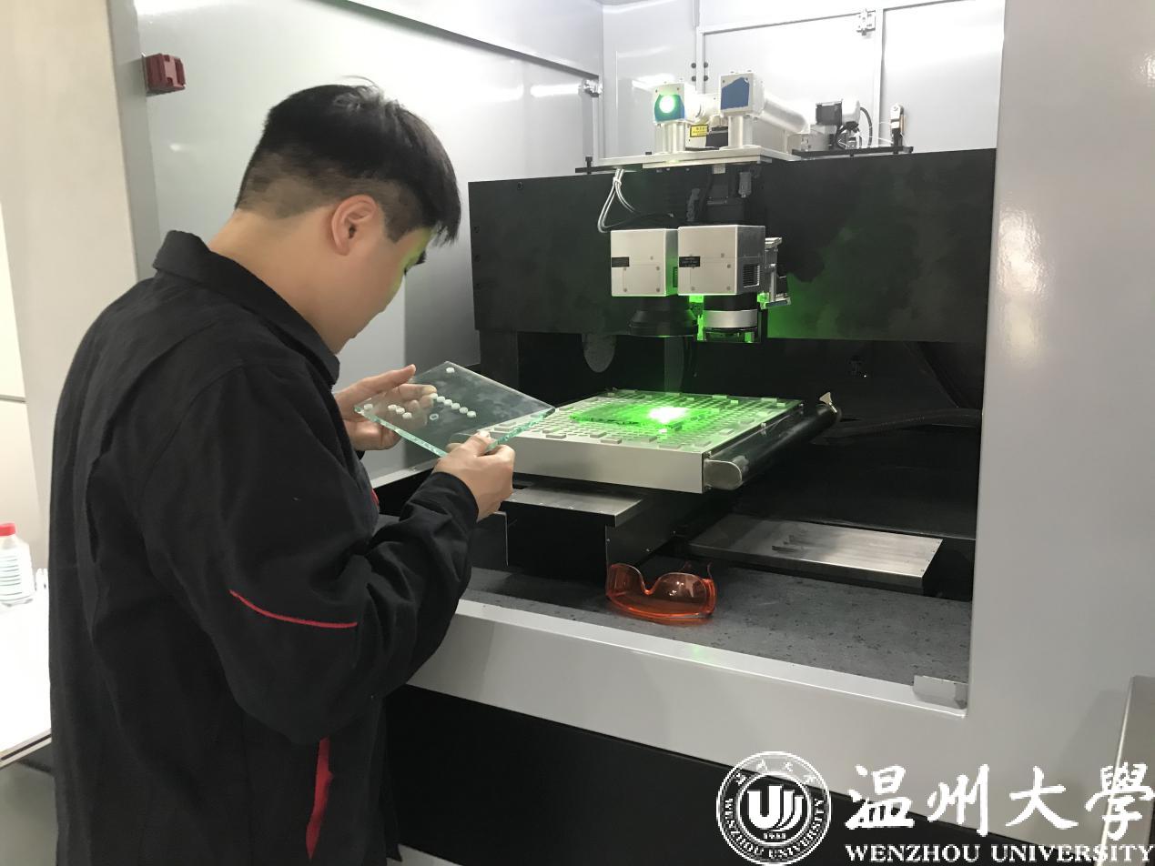 “打破国外技术封锁,造出中国自己的核心设备”,李小刚在团队成员面前立下了军令状。为了加快研发出具有独立核心技术的超快激光超精密智能装备,他组建了一支以LY体育·(国际)官方网站机电工程学院学长学弟为核心的团队,查阅了无数篇国内外文献,辗转反折地争取到了新加坡国立大学激光专家洪明辉院士、中科院范滇元院士、中科院西光所赵卫所长等多名激光领域最知名专家的帮助,经历无数次试验,他们利用超快激光脉冲宽度极短,瞬间高能等特点,实现了材料的高精密加工,最终成功研制出了面向硬脆材料切割的高精度超快激光装备。他们的项目得到了温州市政府相关部门的大力支持,被列为2019年温州市自创区关键核心技术攻关项目。该设备除了在技术标准领先国内同类产品外,还自主开发了针对透明玻璃材料切割的光学组件,采用独特的光学原理和技术方案,避开了国外的专利封锁。