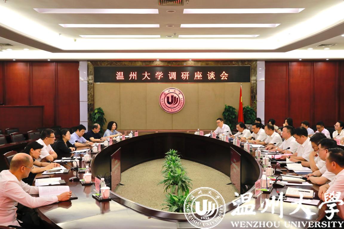 8月12日上午,浙江省政协副主席吴晶一行莅临我校调研指导。省政协委员、港澳台侨和外事委员会专职副主任郭东,温州市政协副主席鲍小瓯等随同调研。校领导谢树华、赵敏、吴金法、庄兴忠、薛伟、徐和昆、蔡曙光、潘玉驹、郑信军及有关学院、部门负责人参加座谈。