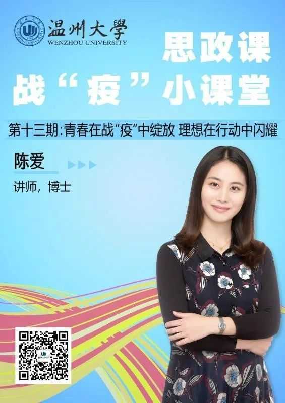 本期推出马克思主义学院博士陈爱带来的思政课战“疫”小课堂:青春在战“疫”中绽放 理想在行动中闪耀。