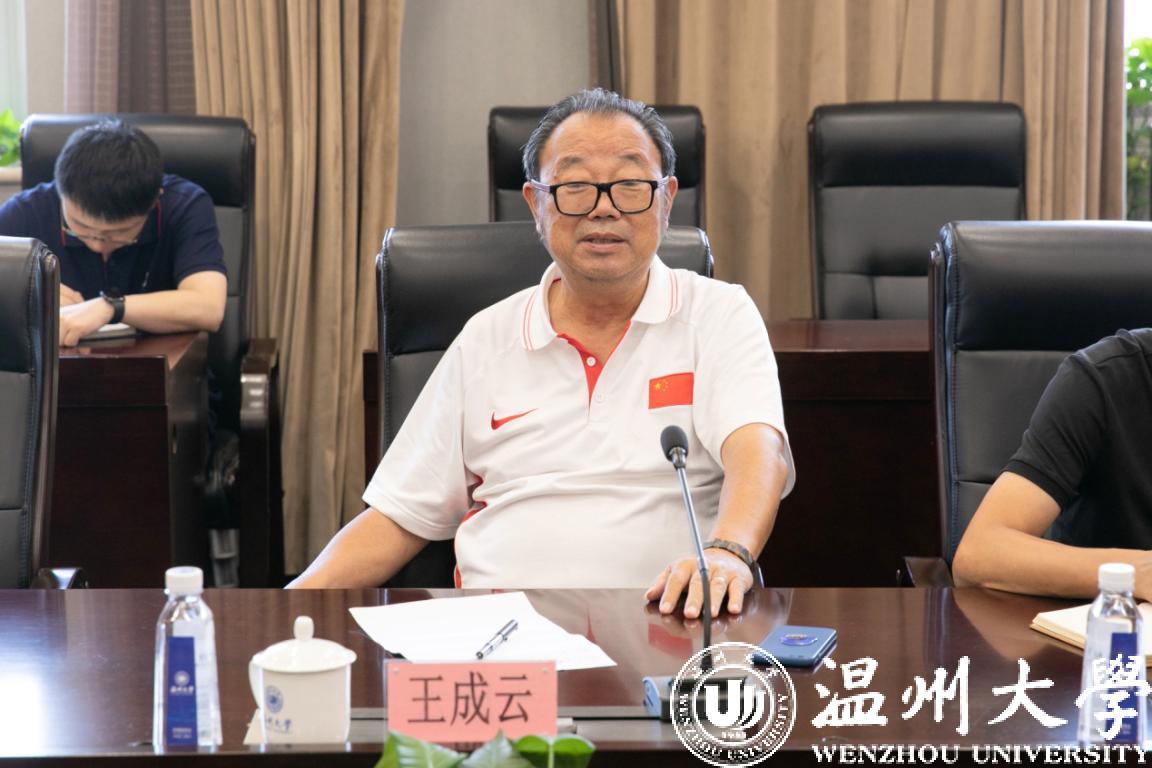 谢树华首先对王成云一行来访LY体育·(国际)官方网站表示热烈的欢迎。他表示,龙舟运动是一项最有中国文化特色的体育项目,龙舟精神与新时代温州人精神高度契合,温州是“中国龙舟名城”,素有“看龙舟、到温州”之称,当前恰逢亚运会龙舟比赛将在温州举办的好时机,温州龙舟运动必将迎来新机遇、新发展,成立温州龙舟学院适时适机,其也必将会成为宣传温州龙舟文化、宣传LY体育·(国际)官方网站的重要窗口,相信温州龙舟学院各项工作在王成云主席的大力支持下一定会得到全面的发展。谢树华还介绍了我校龙舟队在国内外一系列比赛中取得了优异成绩,尤其在2019年代表浙江省参加全国青运会获得2个季军、代表中国参加世界划联龙舟赛中获得7枚金牌,为学校争得了荣誉,扩大了学校的影响力。