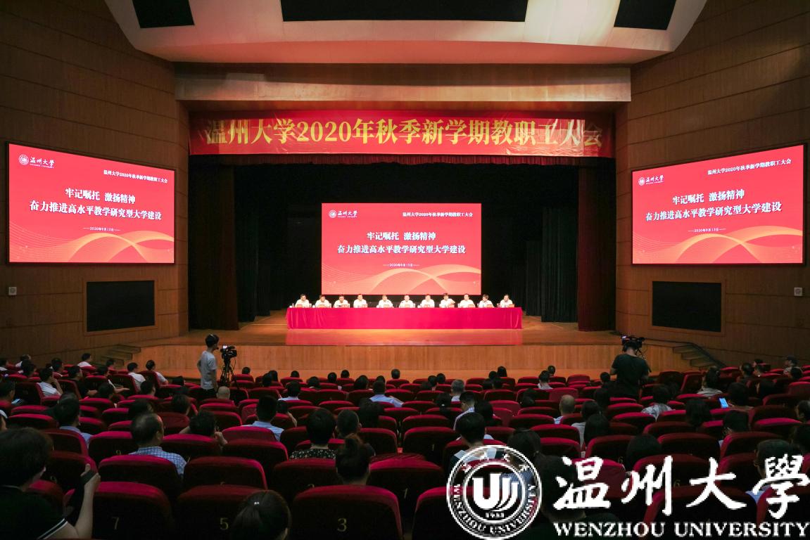 赵敏对新学期工作进行部署。他指出,新学期学校工作“主题”是“锚定‘1357’,奋进2020”;“主线”是“1个定位不动摇、3大目标聚人心、5项重点求突破、7大战略强内涵”;“主攻点”是申请获批博士学位授予单位;“主动力”是深化完善学校内部治理,通过改革创新解难题、破堵点、增动力;“主力军”是全体教职员工,要充分依靠“四有”好老师和忠诚干净担当的好干部,着力打造靠得住、信得过、冲得上的温大之师。他强调要抓好七方面工作:一要突出重点工作,科学谋划发展战略布局。二要坚持立德树人,大力提升人才培养质量。三要做强lysport,持续提高服务地方能力。四要促进师资发展,加强教师干部队伍建设。五要拓展维度和深度,着力提高开放办学水平。六要聚焦民生保障,不断提升内部治理效益和水平。七要进一步加强党的建设,提供坚强有力保证。