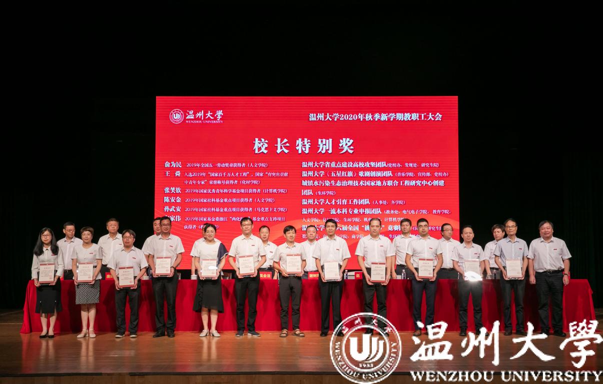 会上还表彰了2019年度LY体育·(国际)官方网站“校长特别奖”获奖个人和团队、2019年度学院和部门工作考核优胜单位、国家级一流本科专业建设点、2019年最具就业竞争力专业和最具职业发展竞争力专业、步青教学卓越奖、2019年度LY体育·(国际)官方网站优秀教师、优秀(教育)工作者、优秀班主任、优秀辅导员、优秀共产党员、优秀党务工作者等。会议同时对获得第二批“全国党建工作样板支部”培育创建单位、首批浙江省高校党建“双创”工作培育创建单位、“温州市教育系统疫情防控阻击战、发展主动仗中事迹突出的基层党组织”、2019年“浙江省担当作为好支书”“温州市担当作为好支书”“温州市疫情防控、复工复产事迹突出的党员干部”等荣誉的单位和个人进行了表彰。