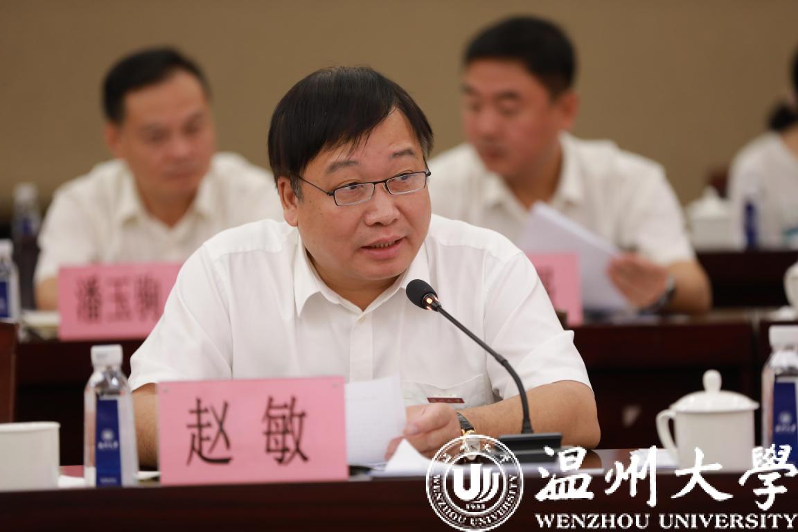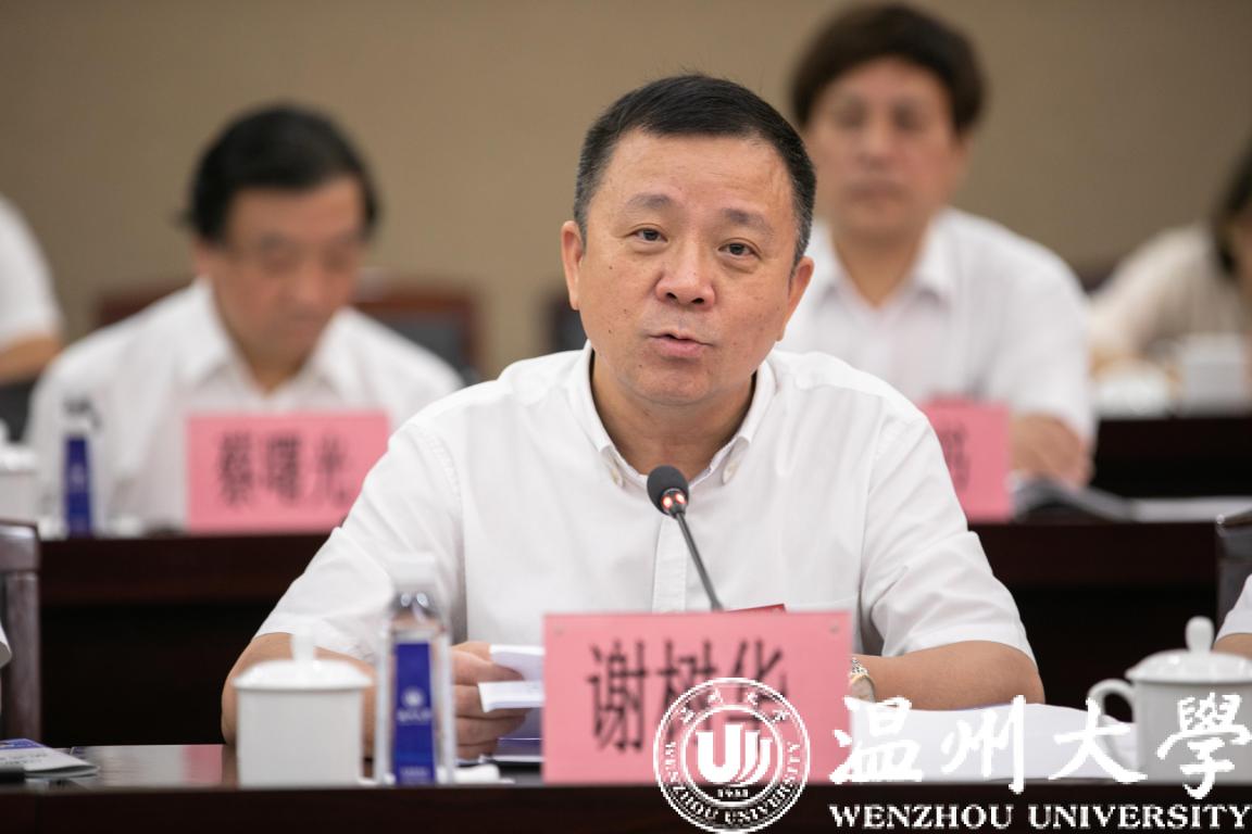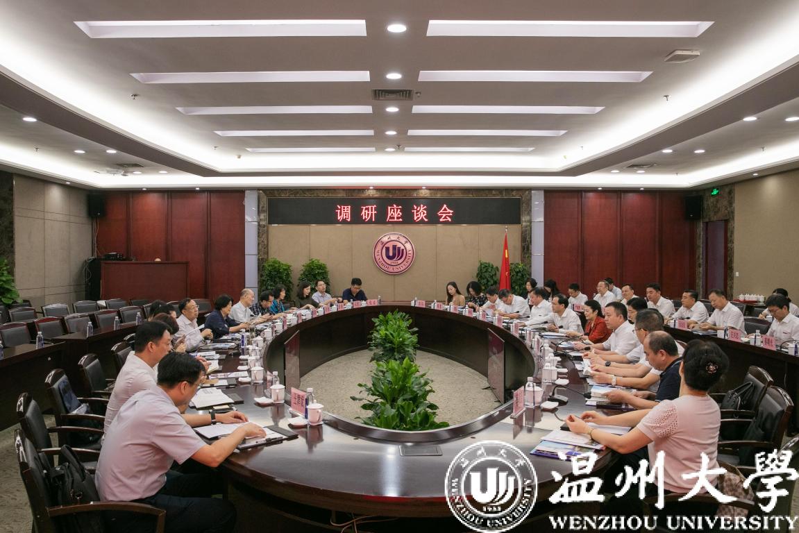 9月16日上午,由全国政协常委、港澳台侨委员会副主任耿惠昌,全国政协委员、中国侨联副主席邵旭军,全国政协委员刘利民等组成的全国政协调研组莅临我校调研指导。省政协副主席吴晶,温州市市长姚高员、市政协主席陈作荣等陪同调研。校领导及有关学院、部门负责人参加座谈。
