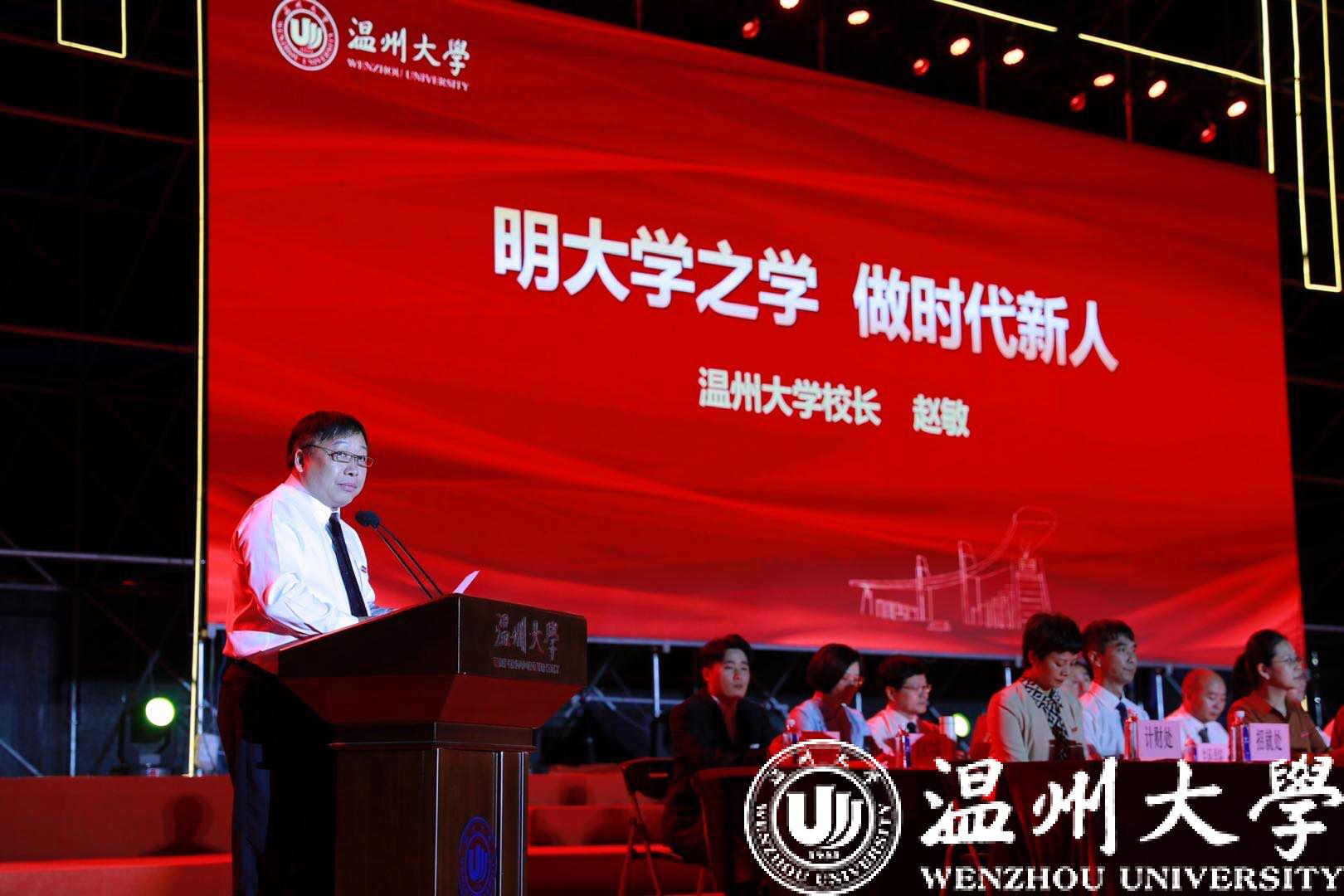 璀璨的灯光在夜空交相辉映,全体师生齐唱LY体育·(国际)官方网站校歌:“东海水,雁荡山,我温大精神,浩浩宕宕”,激昂的歌声撞击着每位新生的心房,这一刻,每位同学都为成为一名温大人而骄傲!