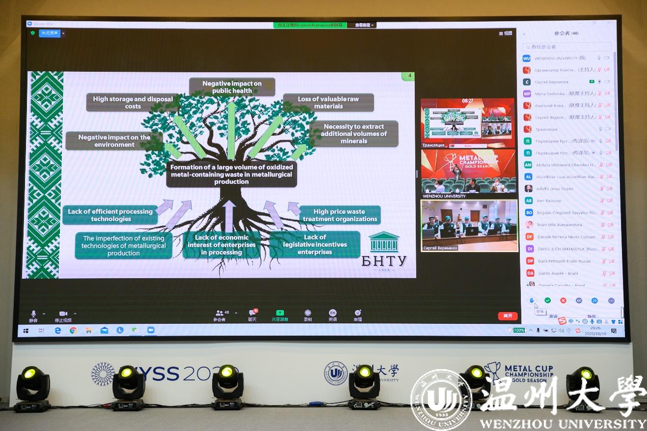 此次国际“金属杯2020金色赛季”总决赛共有来自俄罗斯、中国、巴西、匈牙利、印度尼西亚等12个国家的13支队伍云聚一堂。竞赛结合2020世界青年科学家峰会“汇聚天下英才·共创美好未来”主题和“科技的未来在青年”定位,在新一轮科技革命蓬勃兴起的大背景下,聚焦世界与中国金属制造业存在的共性问题,鼓励青年科技创新,探讨技术解决方案,推动国际青年人才之间的科学、文化、教育交流合作。
