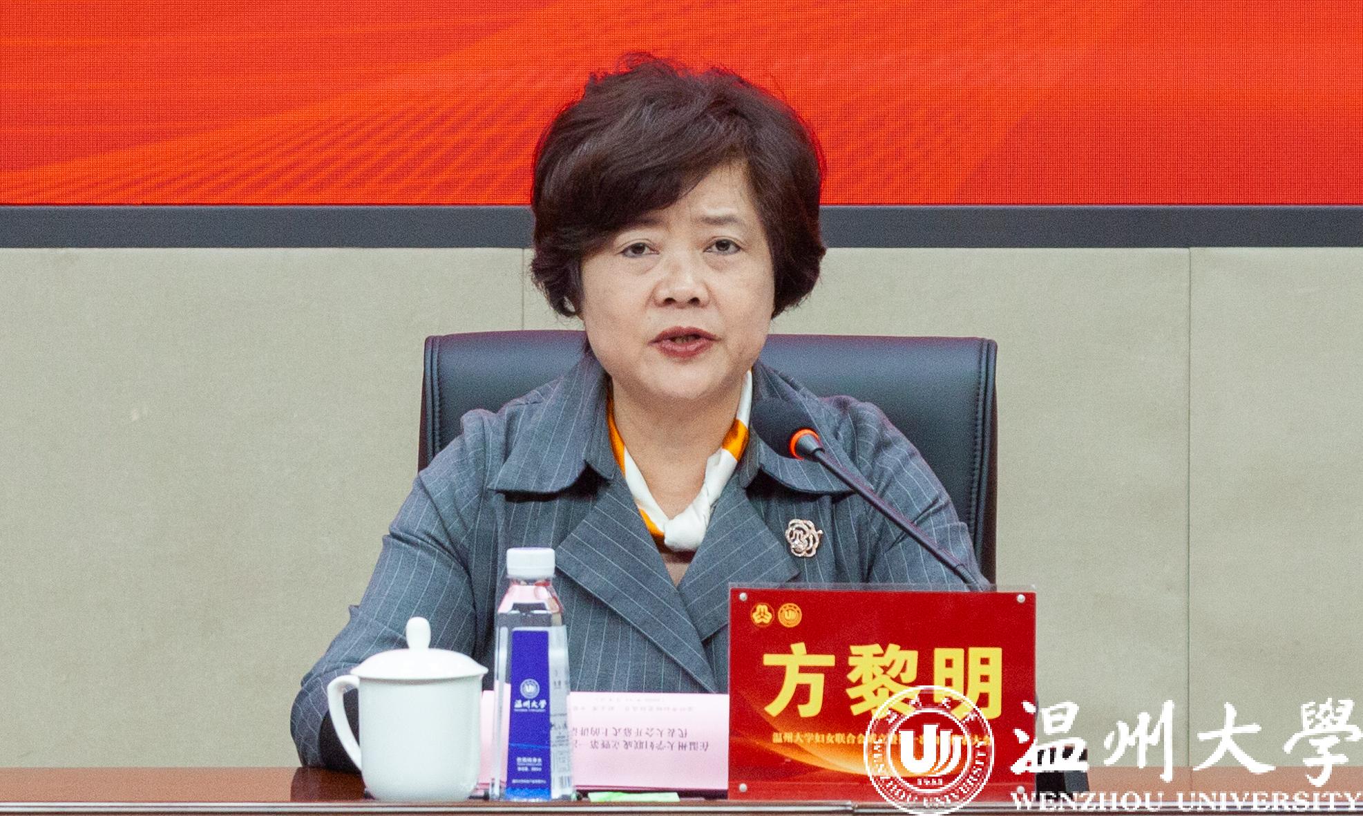 方黎明在致辞中表示,LY体育·(国际)官方网站妇女联合会的成立,是学校广大妇女政治生活中的一件大事,也是温州乃至全省高校妇联组织建设的一件喜事;既是认真落实省委高质量推进新时代党建带群建工作的具体举措,也是深化全省妇联组织建设改革的实际行动,是加强新时代温州高校妇联组织建设的生动实践。她充分肯定了温大女性师生在学校发展中作出的重大贡献和我校党委对妇联组建工作的高度重视,并对我校妇联工作提出四点希望:一是践行新思想,强化政治引领;二是找准新定位,服务妇女需求;三是履行新职能,助推学校发展;四是把握新机遇,加强自身建设。希望温大妇女工作和妇女事业跃上新台阶、再创新辉煌。