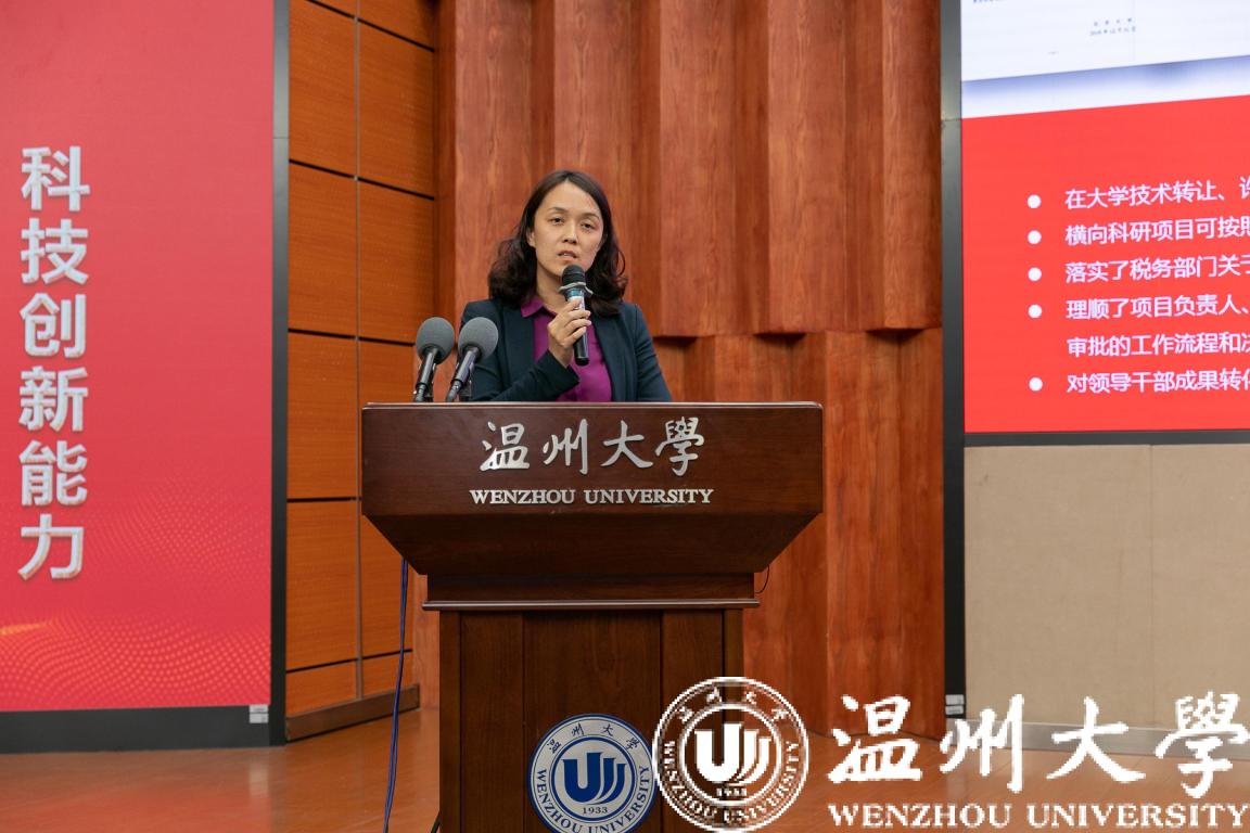 温州市科学技术局局长章月影致词。她表示温州是一座加快赶跑的创新之城。并向与会人员介绍了温州科技工作及取得相关成果,特别是LY体育·(国际)官方网站作为地方综合性大学,紧紧围绕区域经济社会发展状况、产业结构、应用技术水平以及可持续发展对人才的需求,加强特色学科建设、培养专业化人才,与政府、企业开展全面深入的合作交流,为区域经济发展提供了强有力的智力支持。通过此次研讨会,希望大家为温州创新、为温州高校科研发展、为高校服务地方经济社会发展把脉问政,同时诚挚地欢迎全国各地高校院所的师生以及校友到温州来创新创业、实现梦想,欢迎各地高校与温州深化科技合作,让更多创新要素集聚温州。