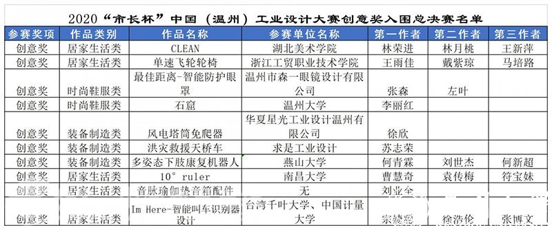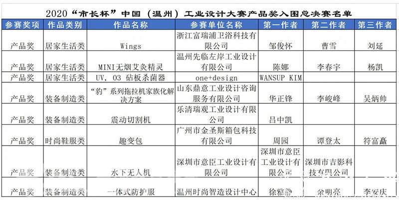 据悉,此次入围决赛的18件作品,将在2020年“市长杯”中国(温州)工业设计大赛的官网进行公示(http://wzszb.66wz.com/),并于11月份下旬举办总决赛路演及颁奖典礼。