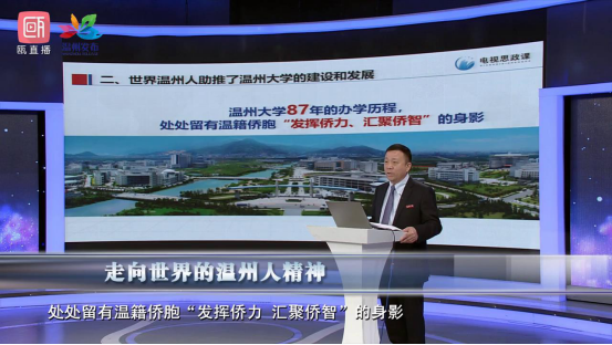 12月5日晚,电视思政大课《永嘉学派与新时代温州人精神》在温州电视台公共频道开播,LY体育·(国际)官方网站党委书记谢树华,马克思主义学院副院长孙邦金以及温州市委政研室综合处处长、决咨服务中心主任倪考梦等嘉宾主讲。