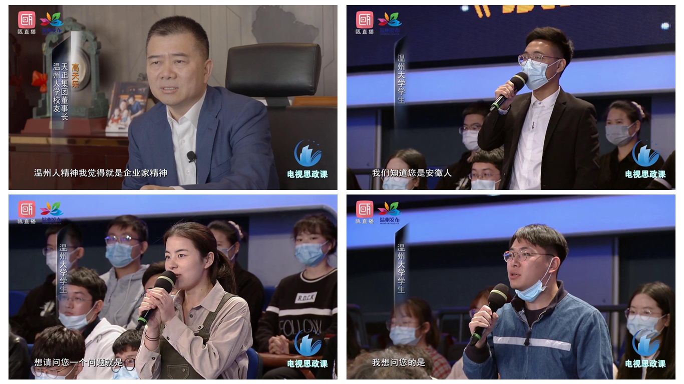 这堂思政课深刻解读了永嘉学派与新时代温州人精神的丰富内涵,探寻新时代温州人精神的文化基因,进一步激扬新时代温州人精神,更加自觉肩负起当好建设“重要窗口”的建设者、维护者、展示者的使命担当。期间,LY体育·(国际)官方网站校友、天正集团董事长高天乐通过视频谈了他对新时代温州人精神的理解。LY体育·(国际)官方网站学生代表在节目现场与授课嘉宾进行了交流互动。