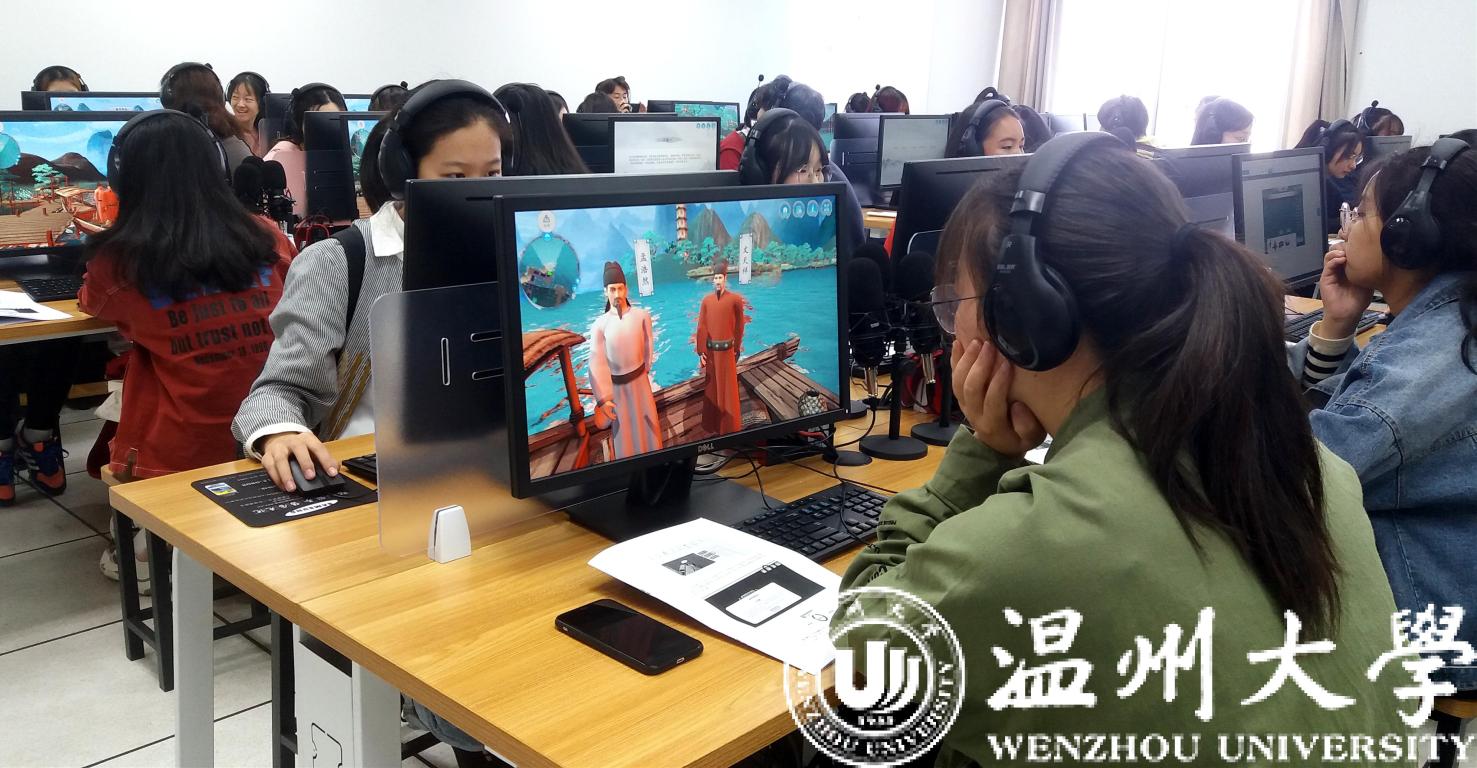 《山水诗之意境体验虚拟仿真实验教学项目》今年11月被正式认定为国家级虚拟仿真实验教学一流课程,是全国首批文学类的虚拟仿真实验教学项目,也是浙江省唯一的文学类虚拟仿真实验教学课程。2017年9月,该项目正式在温大人文学院上线试课,创新教学模式,深受学生欢迎。温州作为山水诗发源地,研发团队将此作为教学项目主题,学生可选取山水诗鼻祖谢灵运、山水诗代表诗人孟浩然、文天祥等文人作为虚拟仿真实验中的特定角色,以江心屿作为特色地标。在技术渲染的手段下,学生可以在充满意境的虚拟仿真环境中沉浸式地学习古典诗词,达到在自主学习过程中掌握系统化知识的目的。项目负责人洪之渊教授告诉记者,该项目的独创性在于将地方特色、创新性学习模式与高新技术融于学科教学之中。通过这个课程激发学生“想知”的欲望,学生对于知识点的把握、理解和运用的程度,要比传统教学有更大的优势。目前该项目的课程内容正在不断丰富,接下来,课程内容还将结合VR技术,实现更为全景式、沉浸式的教学体验。