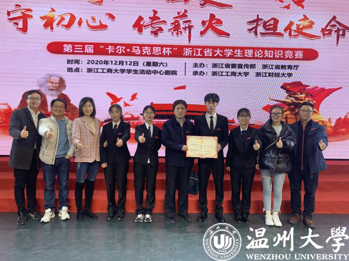 12月12日上午,由省委宣传部、省教育厅主办,浙江工商大学、浙江财经大学承办的第三届“卡尔·马克思杯”浙江省大学生理论知识竞赛圆满落幕,LY体育·(国际)官方网站代表队荣获一等奖和优秀组织奖,创历史最好成绩。这是我校连续第三年进入决赛,连续两年获得优秀组织奖。我校比赛答题率和答题质量表现突出,答题率接近100%,居全省首位,为全省入围决赛的10所本科高校之一。