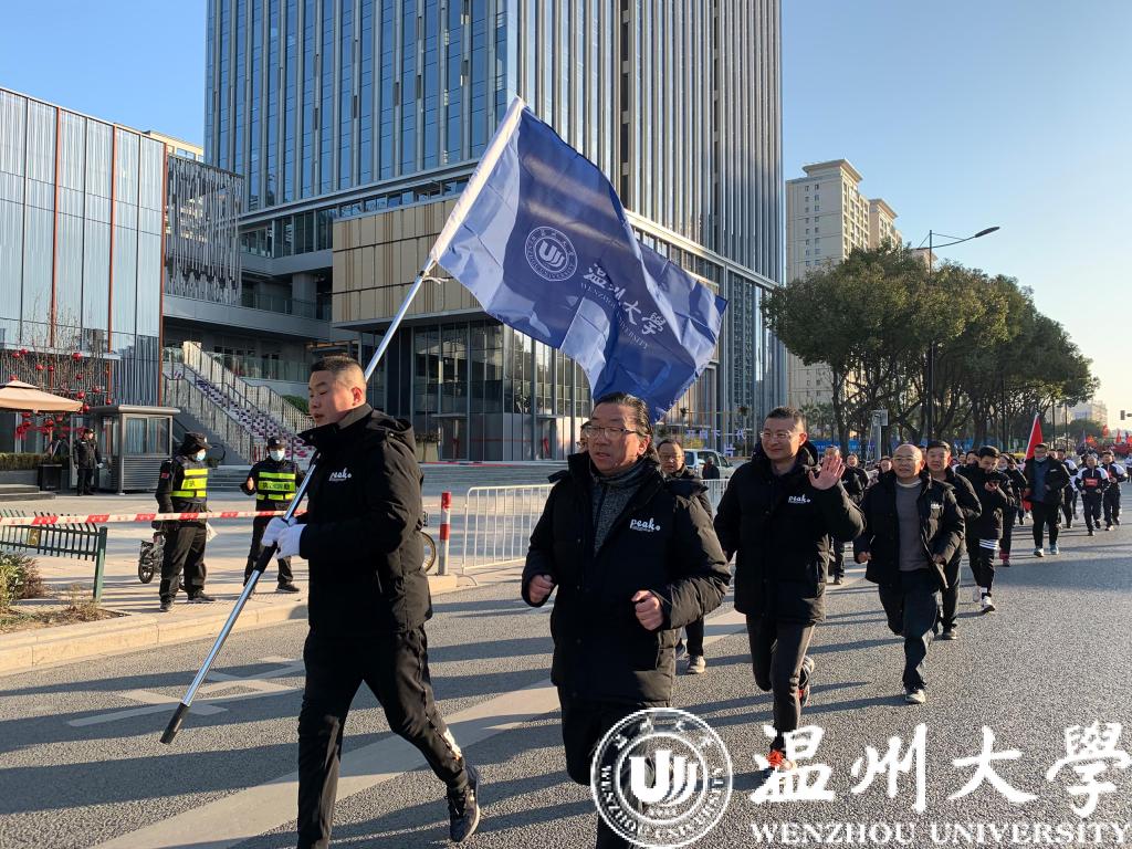 发令枪响,由各行各业代表组成的213支队伍迈着铿锵有力的步伐,陆续从世纪南广场出发。在湛蓝校旗的引导下,我校教职工拉着“办好温大 服务温州”的宣传横幅,格外引人瞩目。大家昂首阔步、意气风发地迈步,充分展示了我校教职工朝气蓬勃,健康向上的精神风貌。