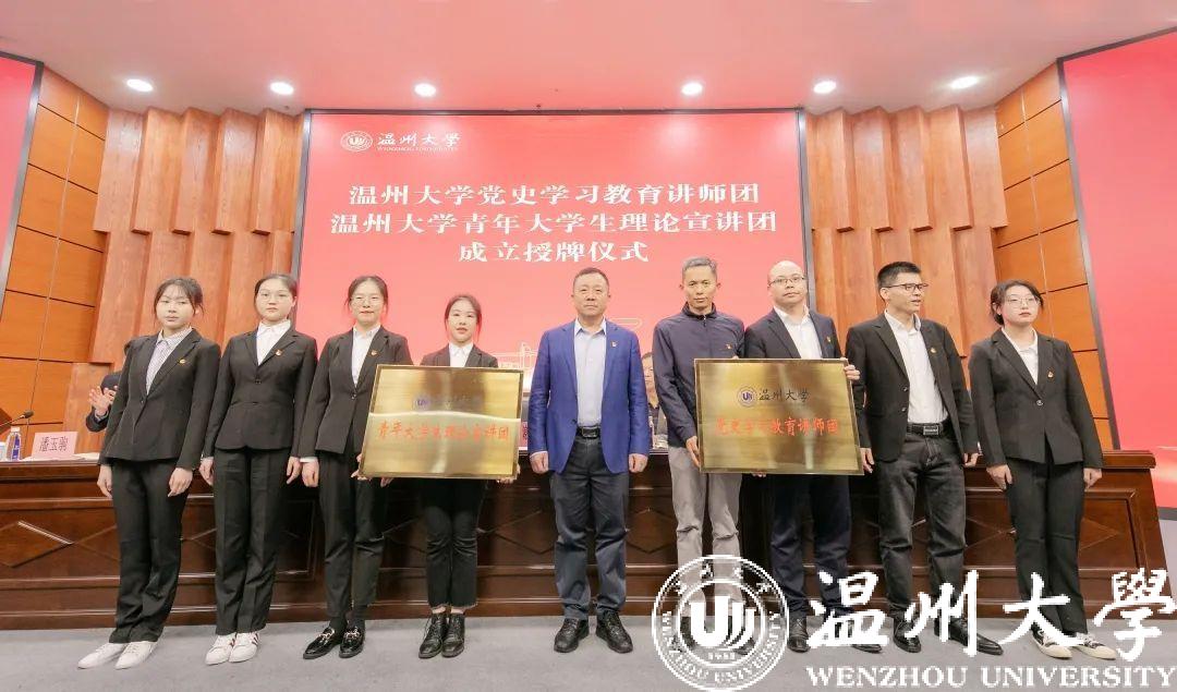 大会还举行了“LY体育·(国际)官方网站党史学习教育讲师团”“LY体育·(国际)官方网站青年大学生理论宣讲团”授牌仪式,谢树华为温大“两团”授牌。LY体育·(国际)官方网站将通过领导干部带头讲、专家学者深入讲、宣讲团巡回讲、师生宣讲骨干广泛讲等形式深入全面开展党史宣传教育。