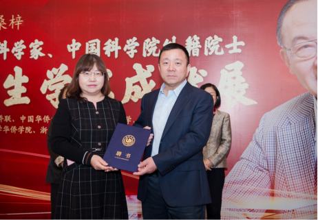 浙江省侨联党组成员、副主席兼秘书长周松一致辞。周松一主席分享了三句话同大家共勉:希望大家充分领略先生严谨的治学态度,为本领“淬火”;希望大家充分领略先生高尚的品格修行,为灵魂“提纯”;希望大家充分领略先生赤诚的家国情怀,为事业“添彩”。