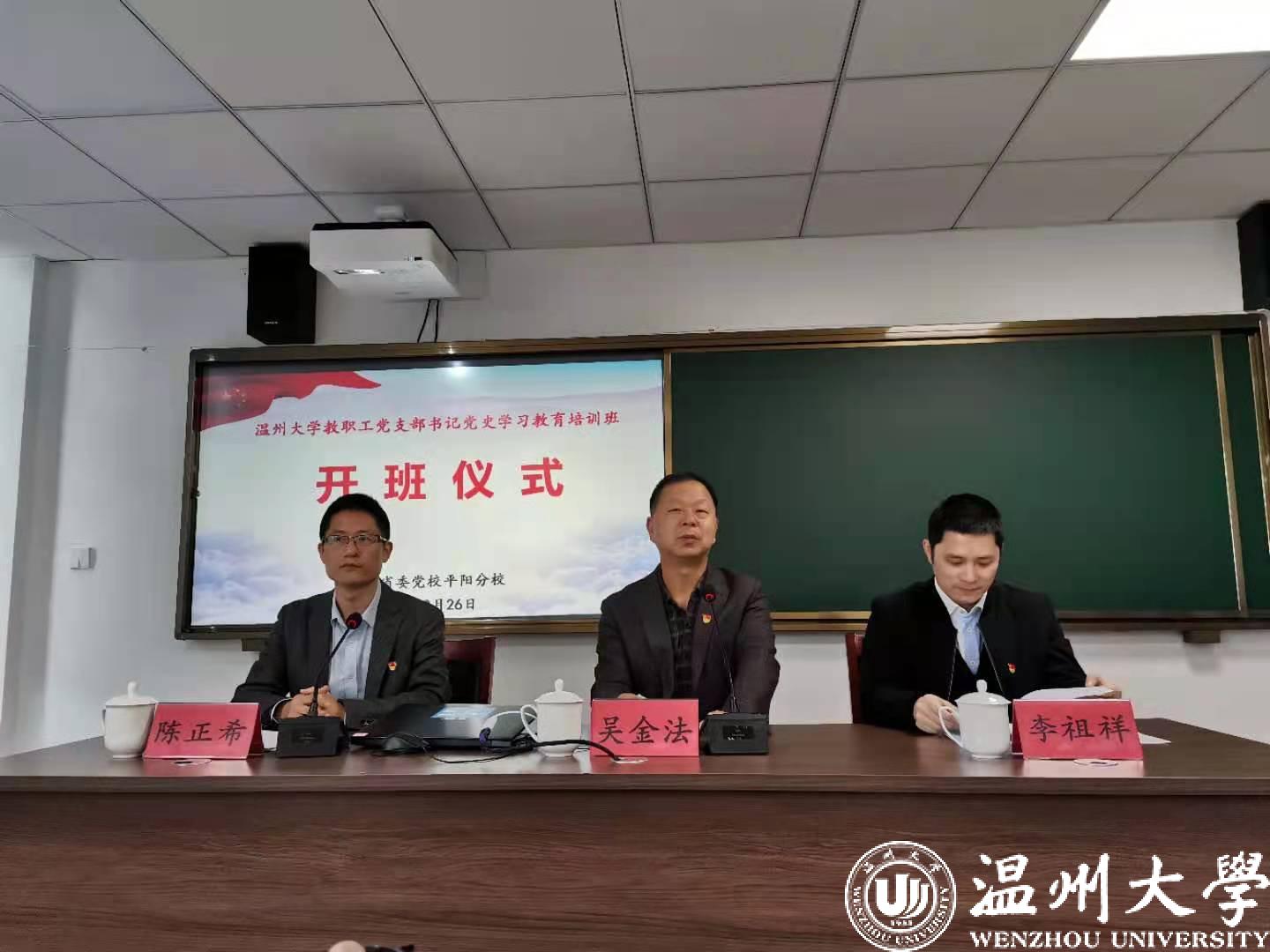 校党委吴金法副书记作开班动员讲话。他指出,党支部书记作为党的最基层组织的“领头雁”和“第一责任人”,要切实增强思想自觉和行动自觉,认真学习领会习近平总书记重要讲话精神,把党史学习教育作为一项重大政治任务抓紧抓好。一是要深刻认识党史学习教育的重大意义,解决好“为什么学”的问题。开展党史学习教育是党中央作出的重大决策,是广大党员干部必须完成的政治任务,是牢记初心使命、推进中华民族伟大复兴历史伟业的必然要求,是把握新时代高等教育使命、办好人民满意的教育的现实需要。二是要准确把握党史学习教育的任务要求,解决好“学什么”的问题。要深入学习贯彻习近平总书记重要讲话精神,把学习党史与学习新中国史、改革开放史、社会主义发展史结合起来,要学好身边的党史,把学习中共党史与学习浙江党史一体贯通起来。三是要充分发挥党支部书记的示范引领作用,解决好“怎么学”的问题。党支部书记要在学习上作出表率,端正态度,主动学习,服从管理,严守纪律,联系实际,学以致用。他强调,参训学员一定要高标准、严要求做好党史学习教育培训,以高质量的党支部工作检验党史学习教育的实际成效,以奋勇争先的精神推动高水平教学研究型大学建设,以优异成绩迎接建党100周年。