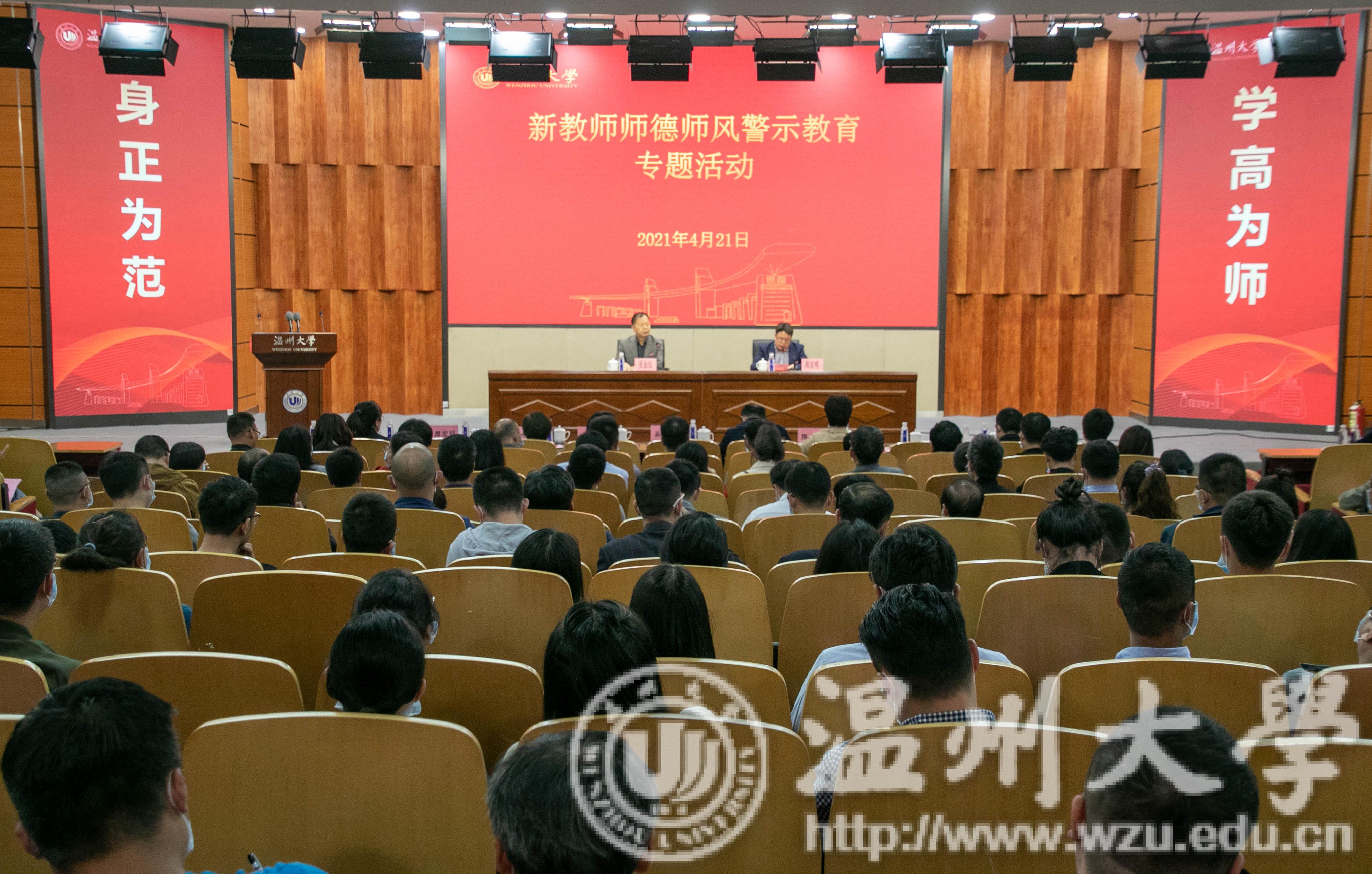 4月21日下午,我校在岩松堂雁山厅组织新教师师德师风警示教育专题活动。校党委副书记吴金法出席,党委宣传部、纪检监察室、计财处、教师教学发展中心等相关职能部门负责人以及近三年来校的教师共260多人参加会议。