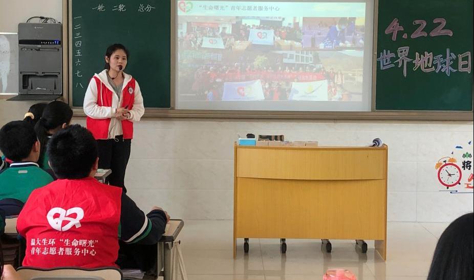 “老师,我们也想做志愿者”,布置现场的“红马甲”被中学生们热情围绕。为激发共青团员保护生态环境、关注地球健康的意识,4月20日下午,LY体育·(国际)官方网站“生命曙光”青年志愿者服务中心来到LY体育·(国际)官方网站附属茶山实验中学七(1)班开展了“修复我们的地球·关注地球健康”的世界地球日主题班会。