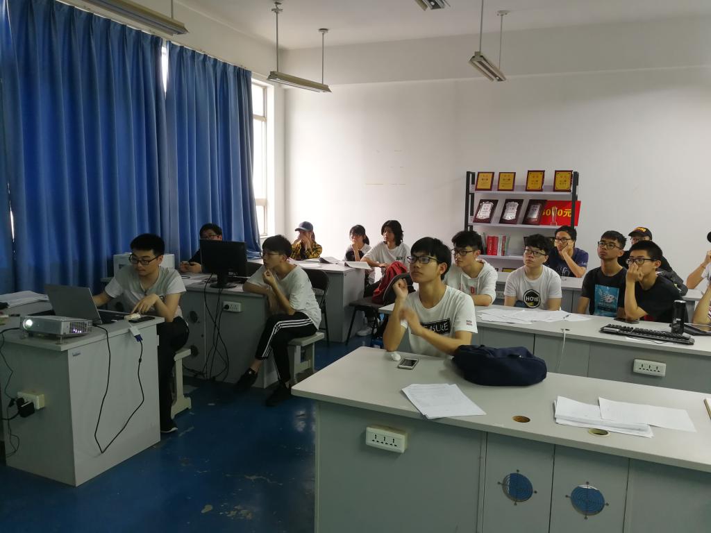 集训队平时训练场景,孙铤超(左列前一)在讲题,右列二排左3陈殷康