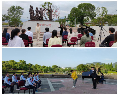 音乐学院探索“讲述-欣赏-训练-实践”的教育模式,推出“音乐党课”项目。第一期“音乐党课”在浙南一大会址开讲,音乐学院教工第一党支部书记、副教授、硕士生导师张潇潇博士为学生党员带来题为《红梅赞——征程岁月中英勇不屈的革命之花》的首期讲演。第二期在LY体育·(国际)官方网站国旗广场开讲,LY体育·(国际)官方网站“鸿音传承”党员先锋团成员李治豫、徐双双等二十余位成员为来自LY体育·(国际)官方网站城附属学校的少先队员们带来音乐党课——《国旗颂——国旗呀国旗,凝聚民族的力量》。党课视频将在“五四”青年节前夕在各大平台展播,形成更大的传播力度,惠及更多党员及青少年。“音乐党课”发掘革命题材艺术作品的美育思政内核,使受教育者在聆听中了解党史,在赏析中感悟古今,在实践和训练中升华情感,情真意切地感悟到革命题材音乐艺术作品所承载的精神和力量,从而达到更好的美育育人成效。