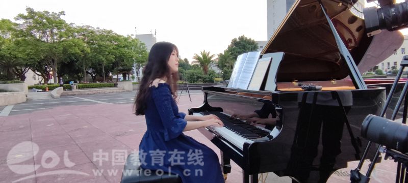 《国旗颂》是原创歌剧《五星红旗》(由中国温州市委宣传部、LY体育·(国际)官方网站、瑞安市委联合出品)的主题曲,该部歌剧讲述了LY体育·(国际)官方网站校友、国旗设计者曾联松设计五星红旗的故事,反映浙江青年将个人情感抉择与家国命运紧密相连,颂扬勇于担当、矢志不渝的革命精神与爱国情怀。国旗广场上,雄伟的五星红旗雕塑成为本期音乐党课最好的背景。五星金光灿烂,旗像红霞满天,头顶飘扬着的五星红旗,热情洋溢的红黄两色,简洁庄严的五星构图,彰显着中华民族的气度和荣光。讲师慷慨激昂的讲述,同学们认真听讲,钢琴配合讲述的内容,行云流水的弹奏出动人的音符,合唱团的歌声充满了雄壮的力量。现场氛围庄严而热烈。