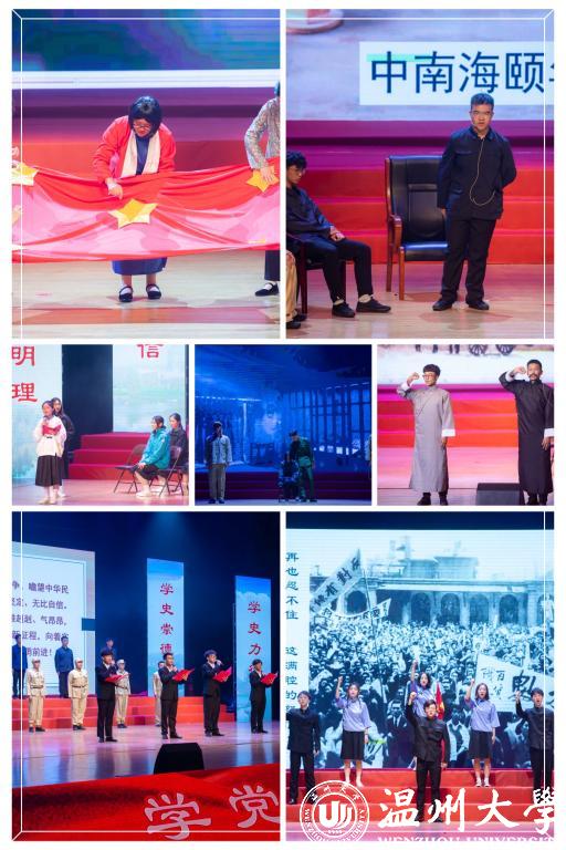 参赛同学围绕思政理论课教学内容,结合中国共产党成立100周年、疫情防控和脱贫攻坚等重大历史事件,通过演讲、朗诵、情景剧、红歌伴唱等形式,生动演绎“甘将热血沃中华的赵一曼、鉴湖女侠千古巾帼英雄秋瑾、烈火中永生的江姐、抗美援朝、卫国戍边英雄战士、感动中国年度人物汪勇”等一个个鲜活的党史学习教育故事,展示了中国共产党长久以来为人民谋幸福的初心,彰显了青年学子誓为中华民族谋复兴的使命与担当。来自商学院、音乐学院、外国语学院的14支代表队参加了大赛,各代表队在作品展示中结合时代背景,注重选题选材的新颖创作,带来了一场别开生面的大学生思政风采展示盛宴。