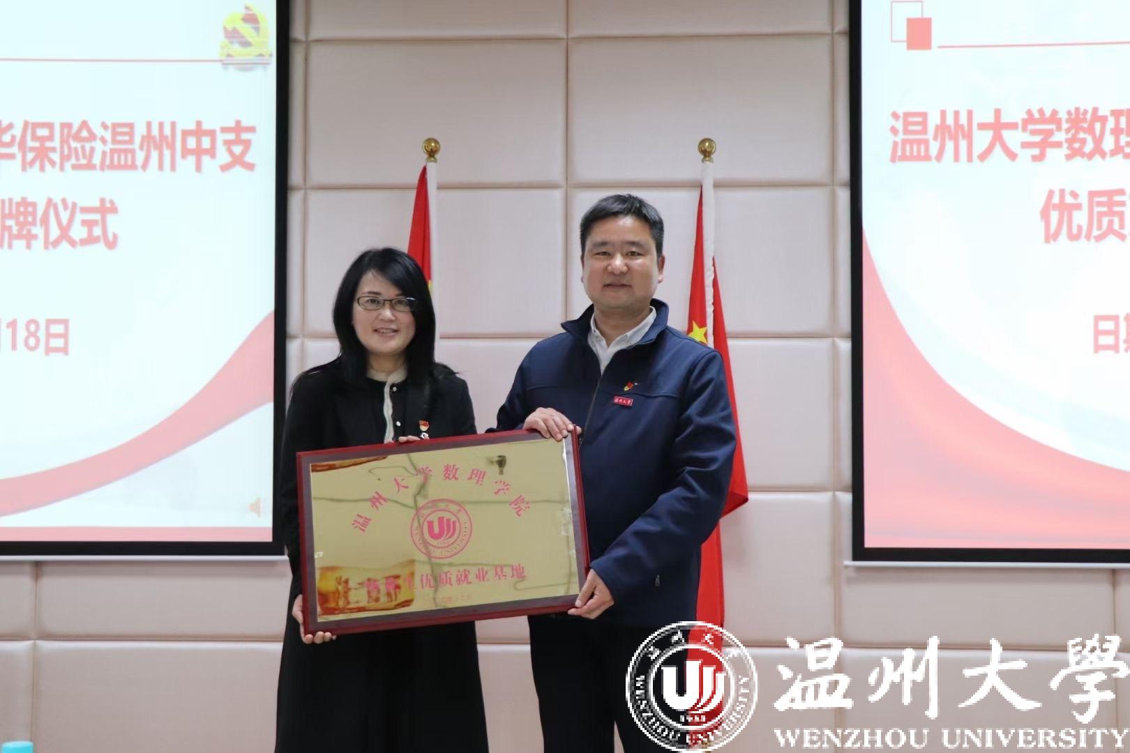 为促进高校毕业生就业工作,数理学院还与新华保险温州中支共建毕业生优质就业基地,向新华保险温州中支授予“毕业生优质就业基地”牌匾,以共同培养优秀的学生和员工,实现校企双赢。据新华保险温州中支党支部书记陈菊妫介绍,该公司为数理学院毕业生打通招聘渠道,有意向竞聘的毕业生可优先面试。温州市政府殷市长调研新华保险温州中支时充分肯定与表扬了LY体育·(国际)官方网站数理学院与新华保险温州中支通过党建共建,建立优质就业基地助力毕业生留温留浙工作这一举措。